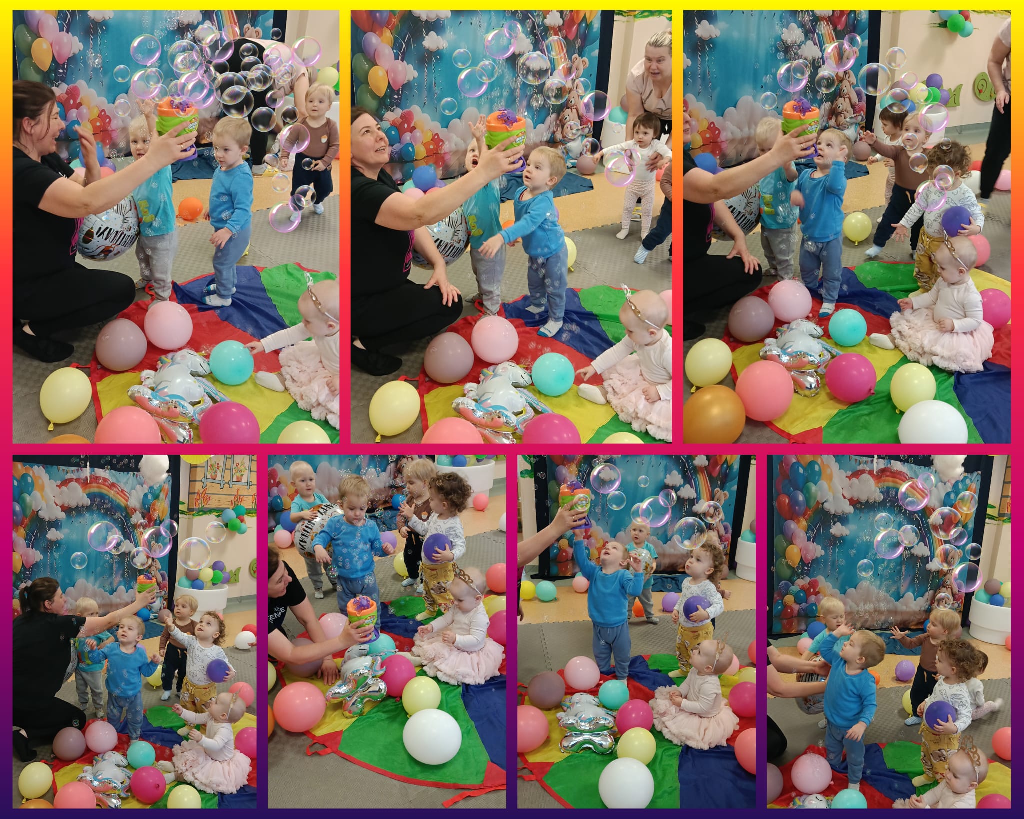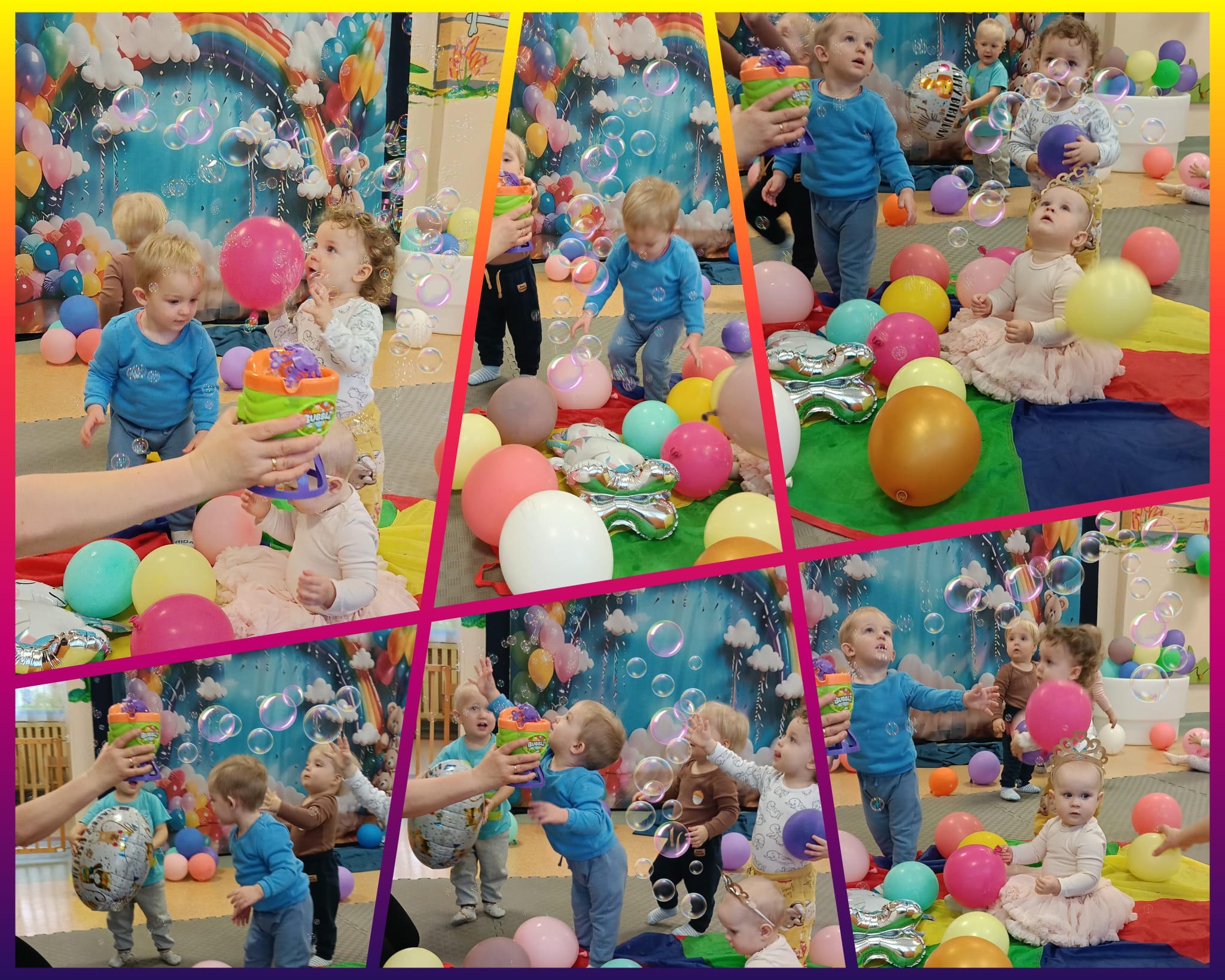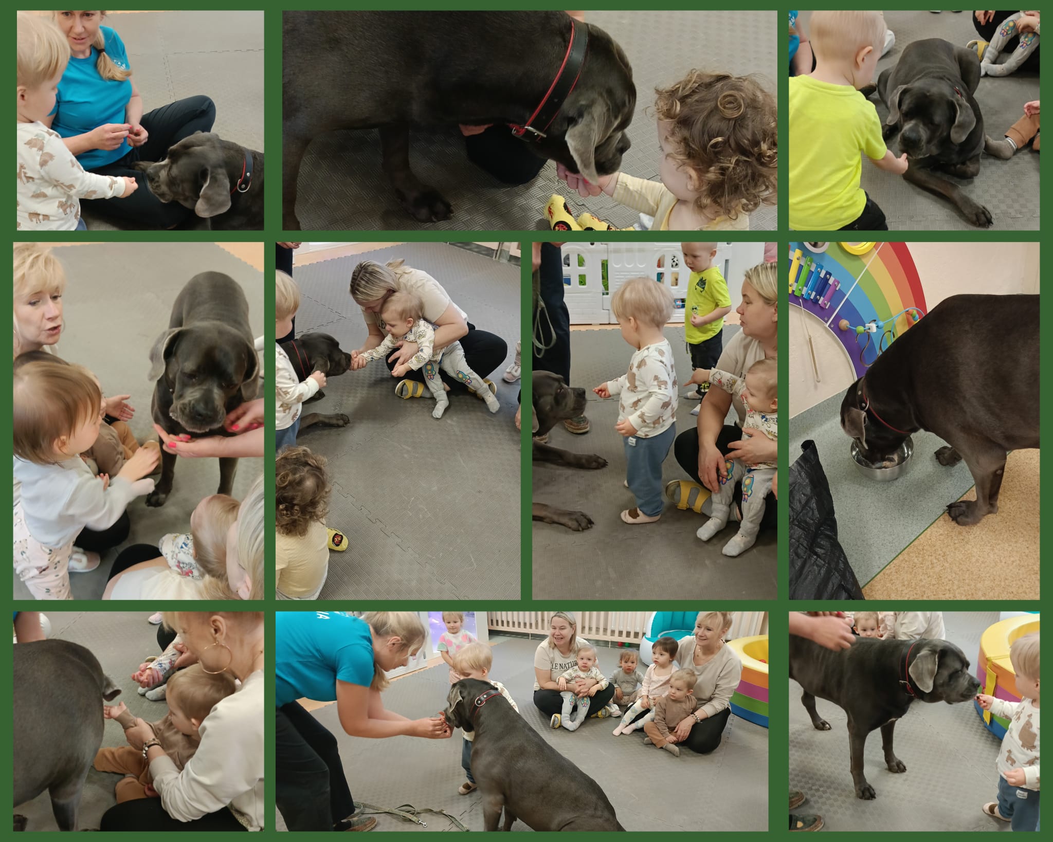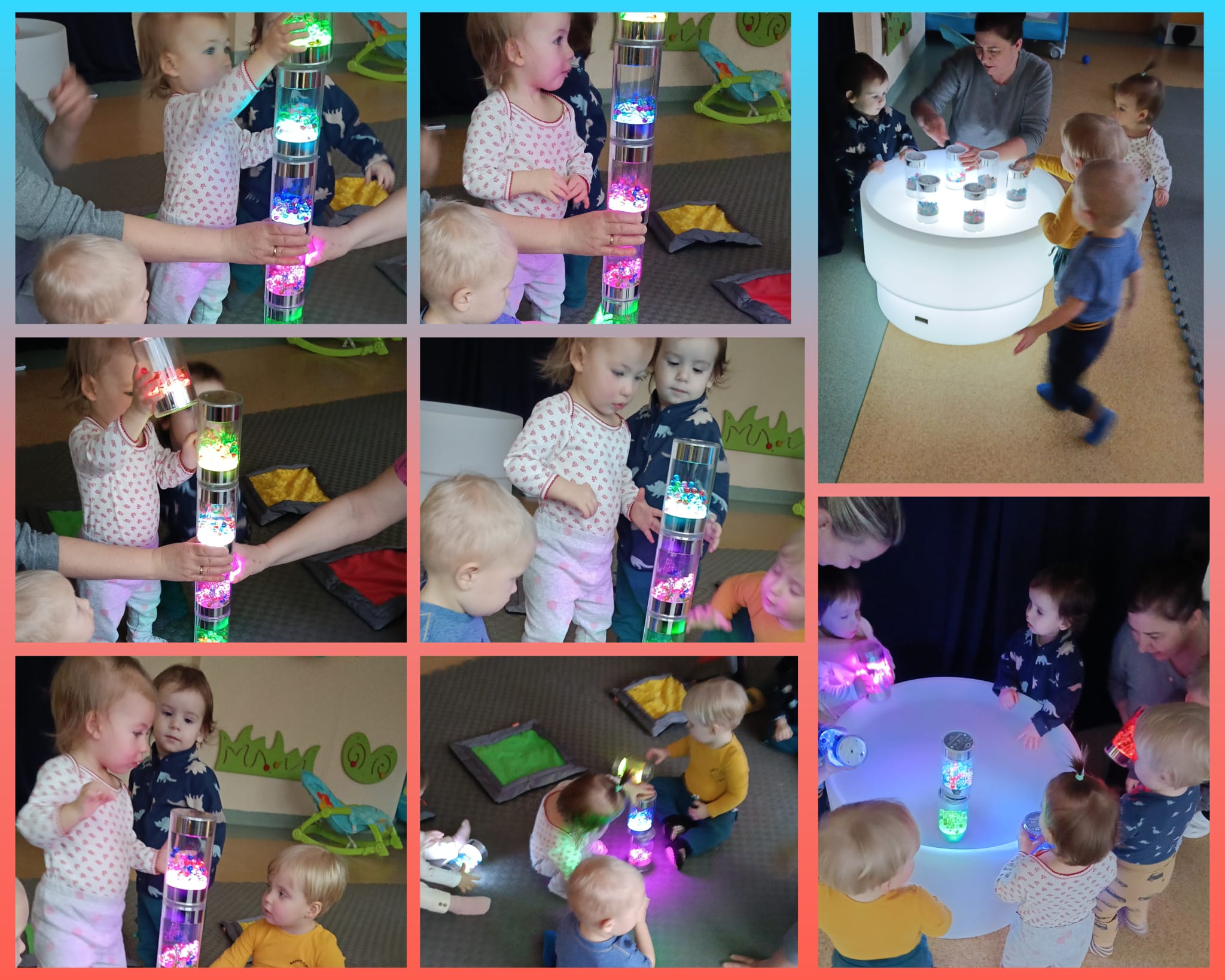 W minionym czasie maluszki brały również udział w zajęciach ruchowych i sensorycznych z wykorzystaniem świetlnych tub. Zabawy ze światłem i dżwiękiem pozwoliły dzieciom wyciszyć się i skupić na konkretnych bodźcach. Dużą niespodzianką okazała się dogoterapia.Odwiedził nas pies o imieniu Aira. Zajecia z czworonożnym pupilem pomagały dzieciom w przełamywaniu lękow, uczyły empatii i stymulowały zmysły.