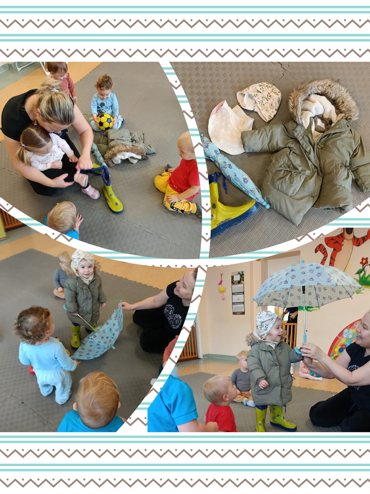 Nasze Słoneczka poznawały w jaki sposób ubrać się jesienią, gdy na dworze jest deszczowo i i zimno.