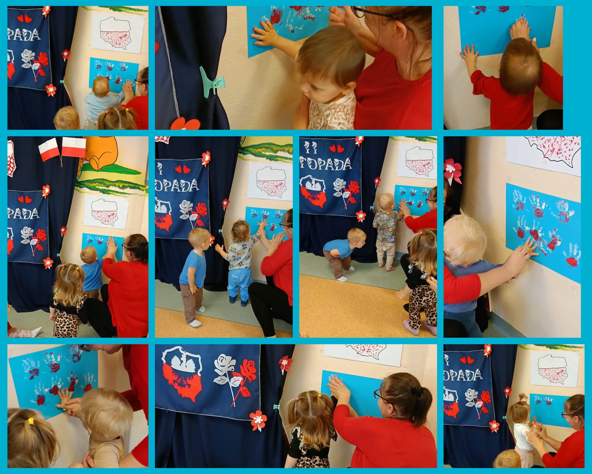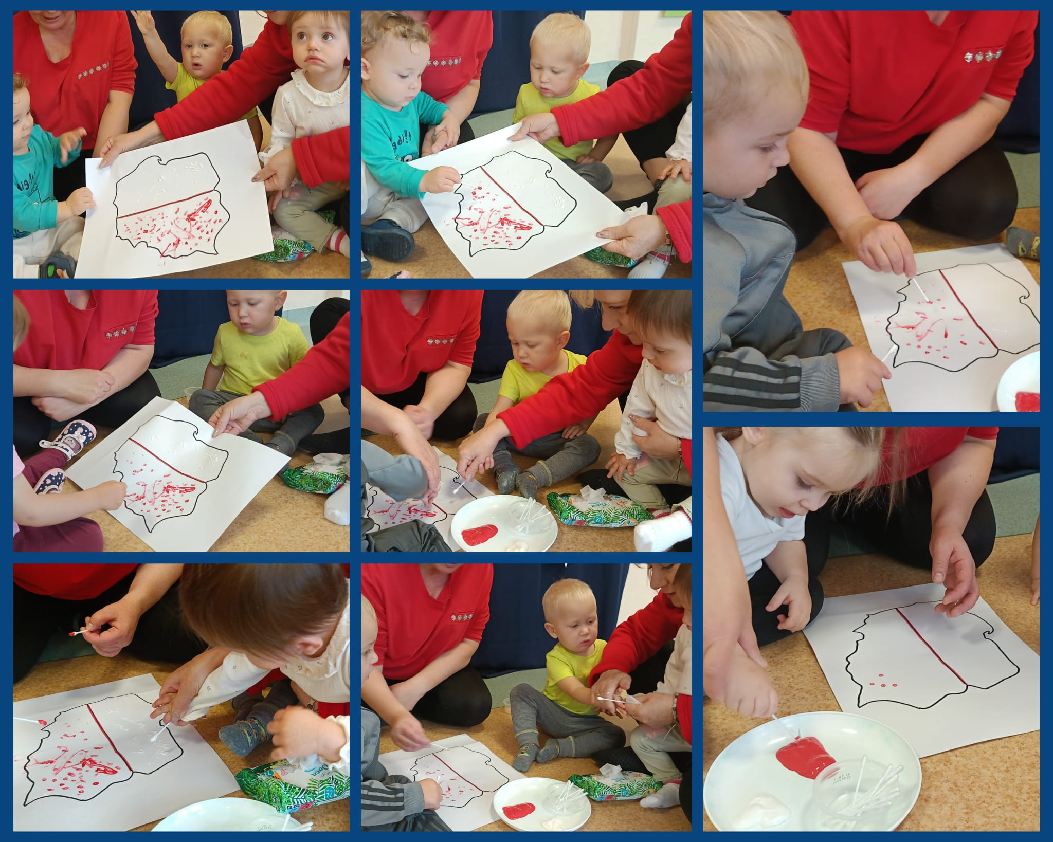 Następnym świętem, które przybliżyliśmy maluszkom było " Święto Niepodległości". Dzieci mogły zapoznać się z symbolami narodowymi oraz naszymi barwami narodowymi. Jednocześnie poprzez zabawę rozwijały motorykę małą.