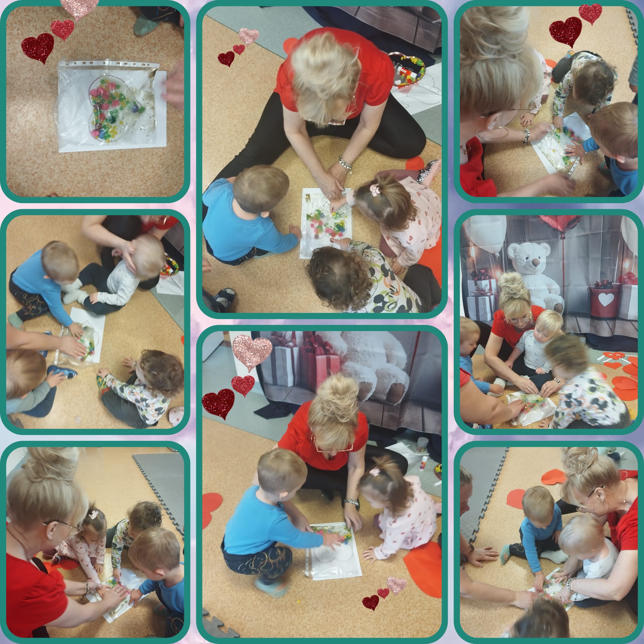 Słoneczka z okazji zbliżających się Walentynek wspólnie z paniami opiekunkami ozdabiały serduszka używając różnych technik.