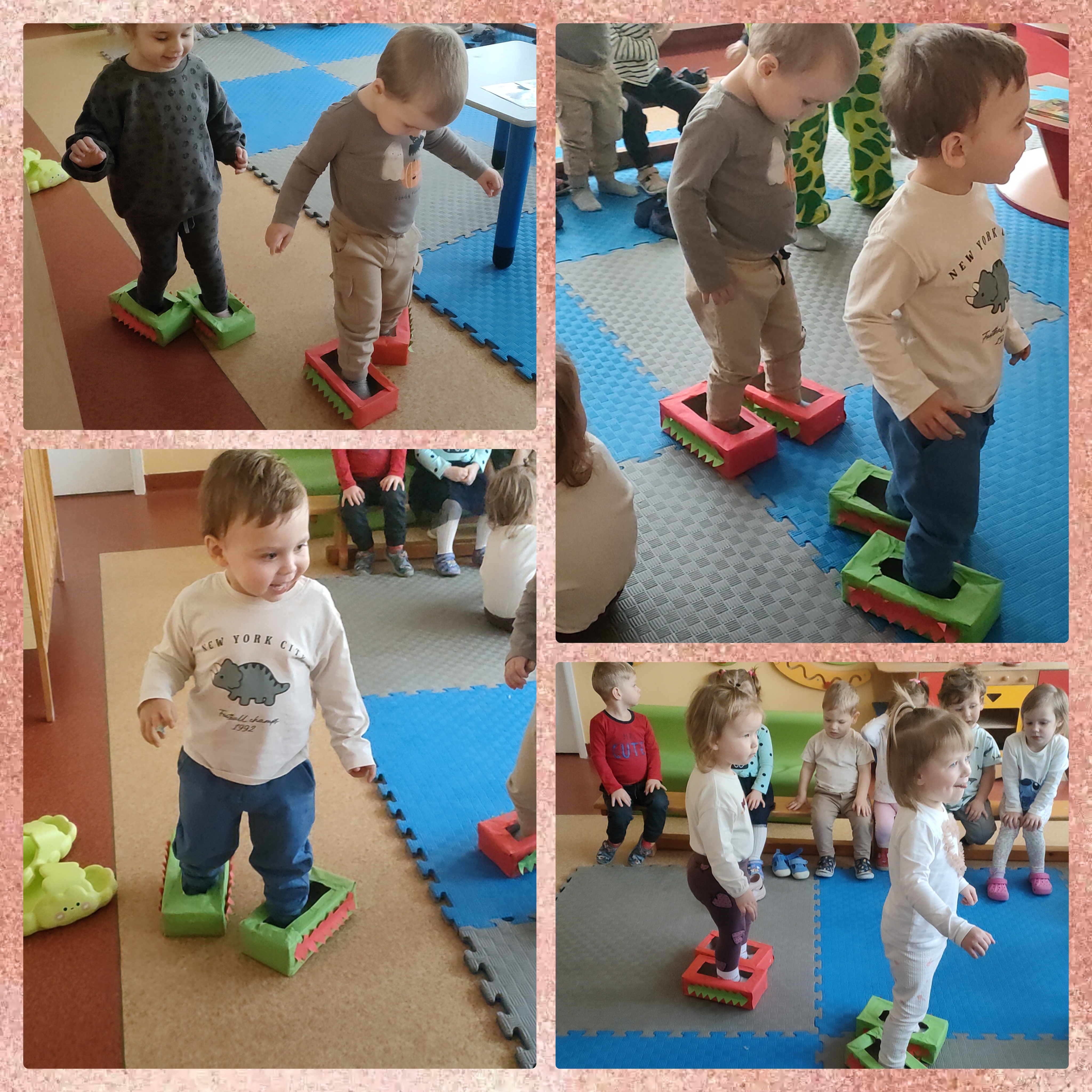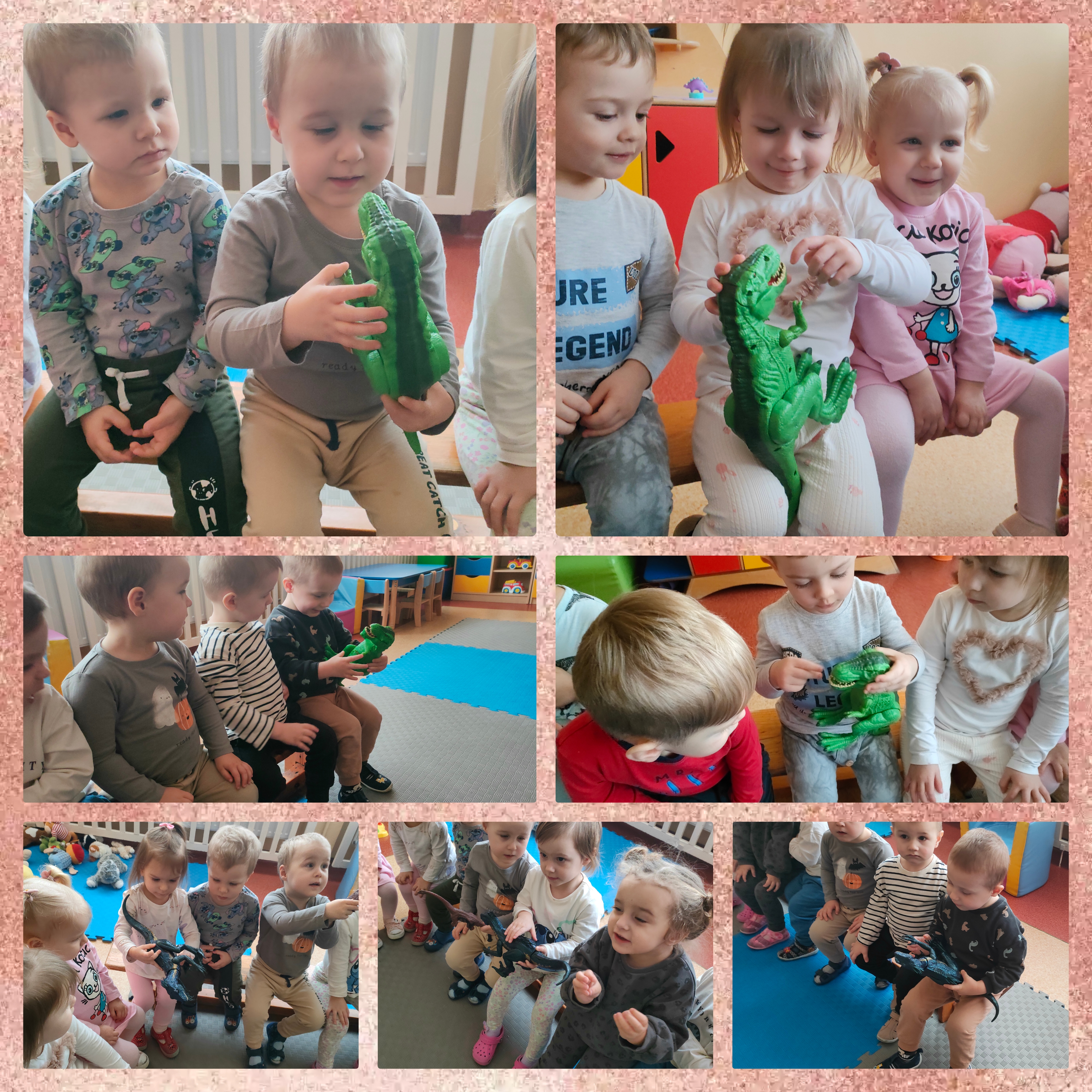 Upodobniły się do swoich czworonożnych przyjaciół, zakładając przygotowane wcześniej kocie opaski i malując wąsiki. Były też wesołe „kocie zabawy”, takie jak: koci spacerek, rozwiązywanie zagadek - "Gdzie jest schowana myszka i kotek?", wykonanie pracy plastycznej - malując włóczką i farbą dużego kota, recytowanie wierszy i śpiewanie kocich piosenek. Zapoznały się z kocimi obyczajami. Poznały sposoby pielęgnacji kotów oraz ciekawostki na ich temat. Zajęcia zostały zorganizowane w celu przekazania dzieciom informacji na temat prawidłowej opieki nad zwierzętami, wyrabiania szacunku dla zwierząt. Dinozaury to stworzenia, które od dawna niezwykle fascynują szczególnie najmłodszych. Nie tylko zaskakują swoim wyglądem i wielkością, ale też kryją wiele tajemnic. W minionym tygodniu w sali naszych Biedroneczek pojawił się niezwykły kącik: ,,Park jurajski", ponieważ maluszki obchodziły Dzień Dinozaura. Zorganizowano zajęcia, które wprowadziły dzieci w prehistoryczny świat i przybliżyły im życie tych wyjątkowych gadów. Dzieci brały udział w wielu ciekawych aktywnościach, można zobaczyć w galerii zdjęć. Ponadto maluszki wychodziły na podwórko lub bawiły się wesoło w sali zabaw. Odwiedziła nas również pani z Biblioteki z ciekawymi książeczkami.