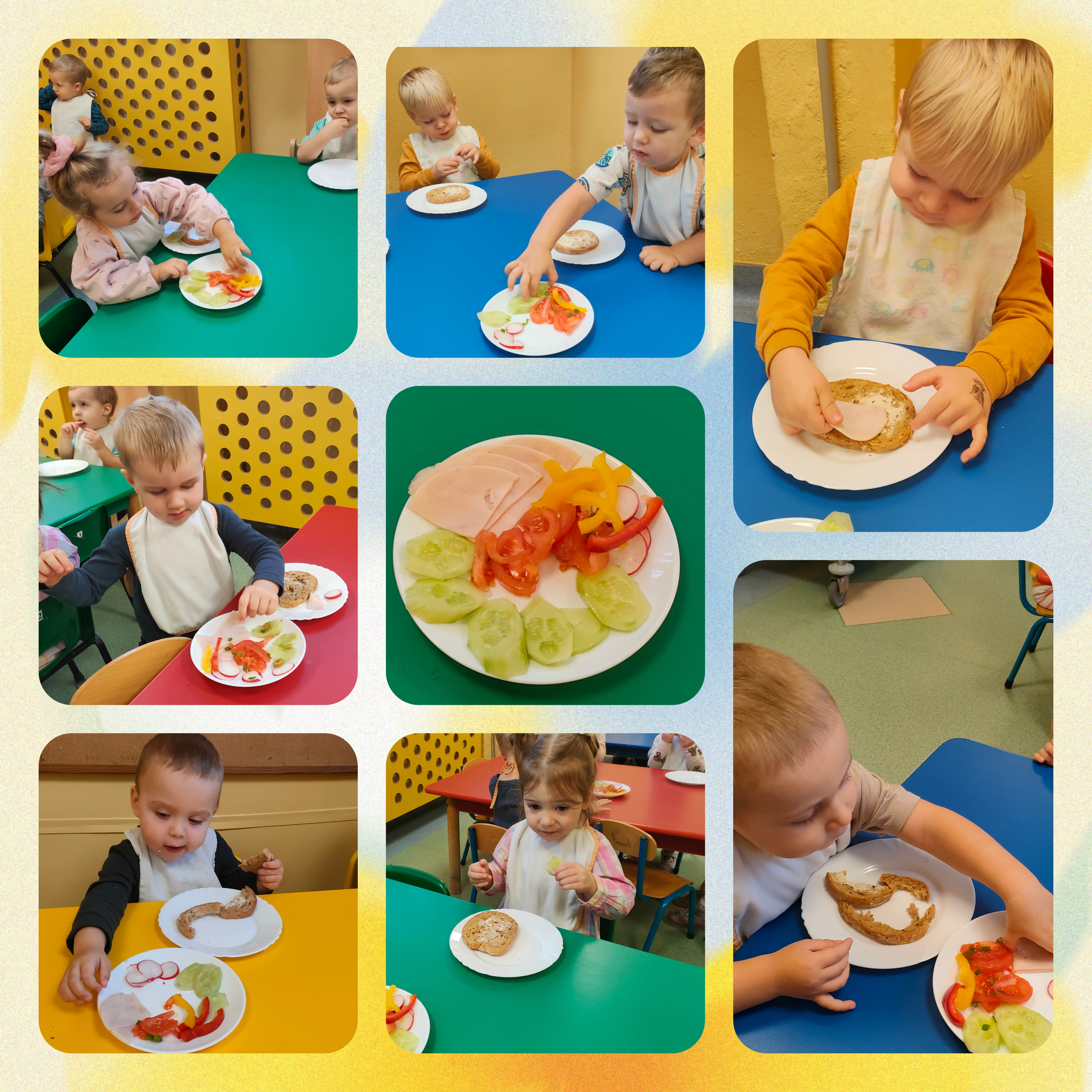 Dzień Zdrowego Jedzenia i Gotowania, obchodzony jest 8 listopada. Ale my obchodziliśmy go we wtorek. W Polsce jest też organizowany jako Dzień Zdrowego Śniadania. Święto ma na celu promowanie zdrowych nawyków żywieniowych, szczególnie wśród dzieci. Maluszki w ten dzień miały okazję samemu tworzyć zdrowe i kolorowe kanapki. Zachęcamy do robienia takich akcji w domu, ponieważ dzieci lubią dokonywać wyboru. Czują się wtedy ważne i mają zaspokojonego poczucie sprawstwa.