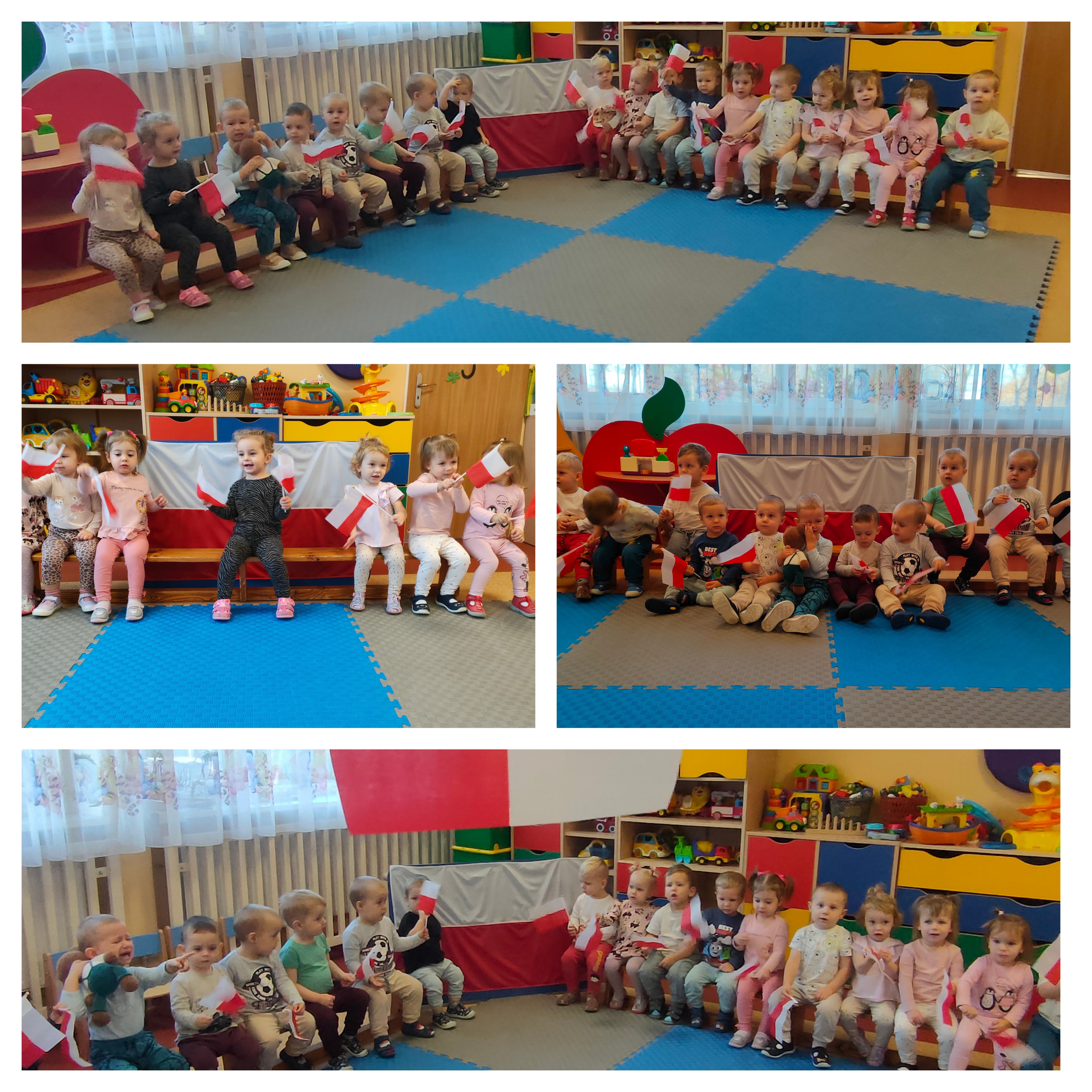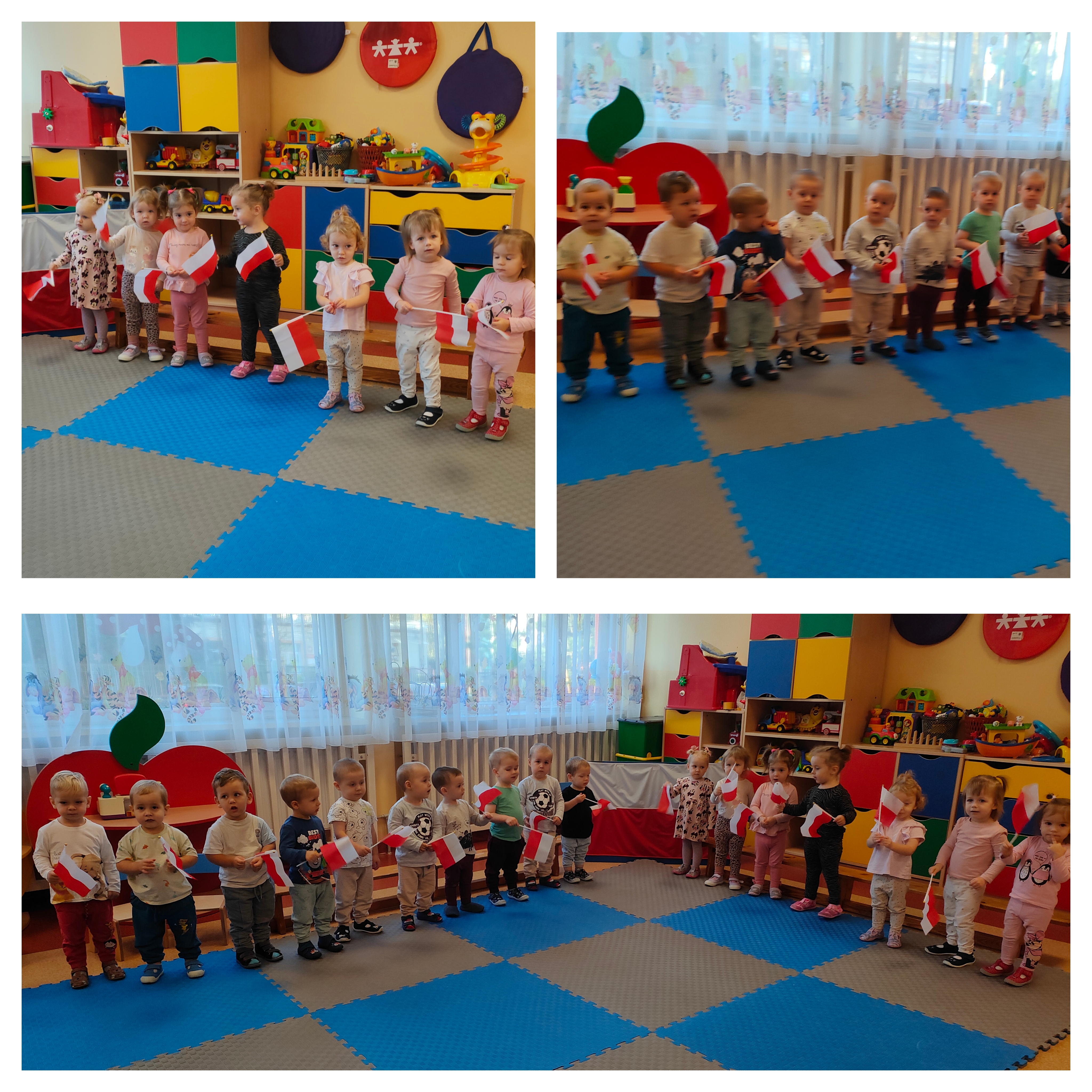 Dziś w naszym Żłobku świętowaliśmy Narodowe Święto Niepodległości. To wyjątkowy czas dla każdej Polki i Polaka. Odbyła się uroczystość upamiętniająca kolejną rocznicę odzyskania niepodległości przez Polskę. Z tej okazji dzieci z wszystkich grup zebrali się, aby uroczyście świętować ten wyjątkowy dla Polaków czas. Wszyscy z powagą i w dużym skupieniu odsłuchali Hymn Narodowy.