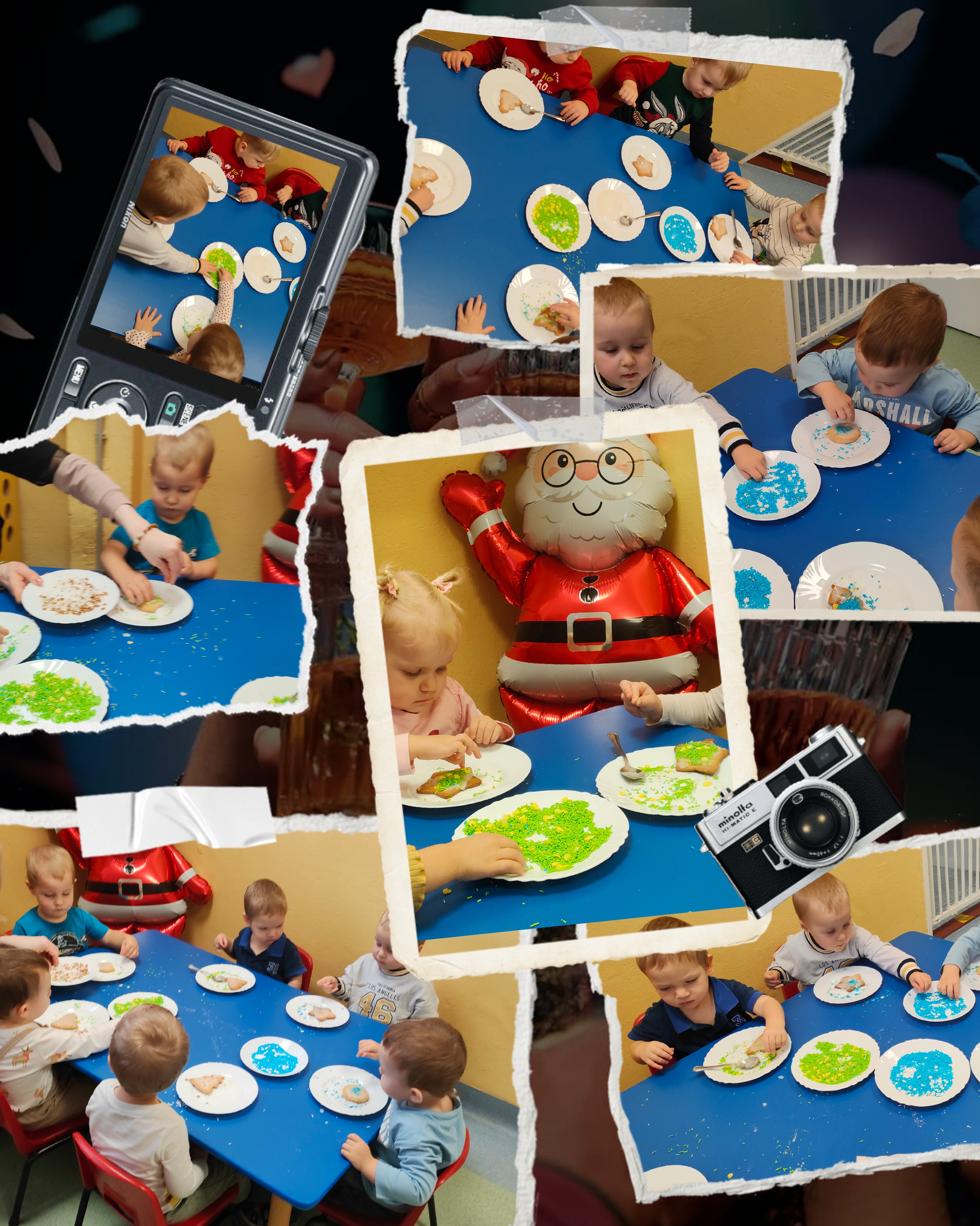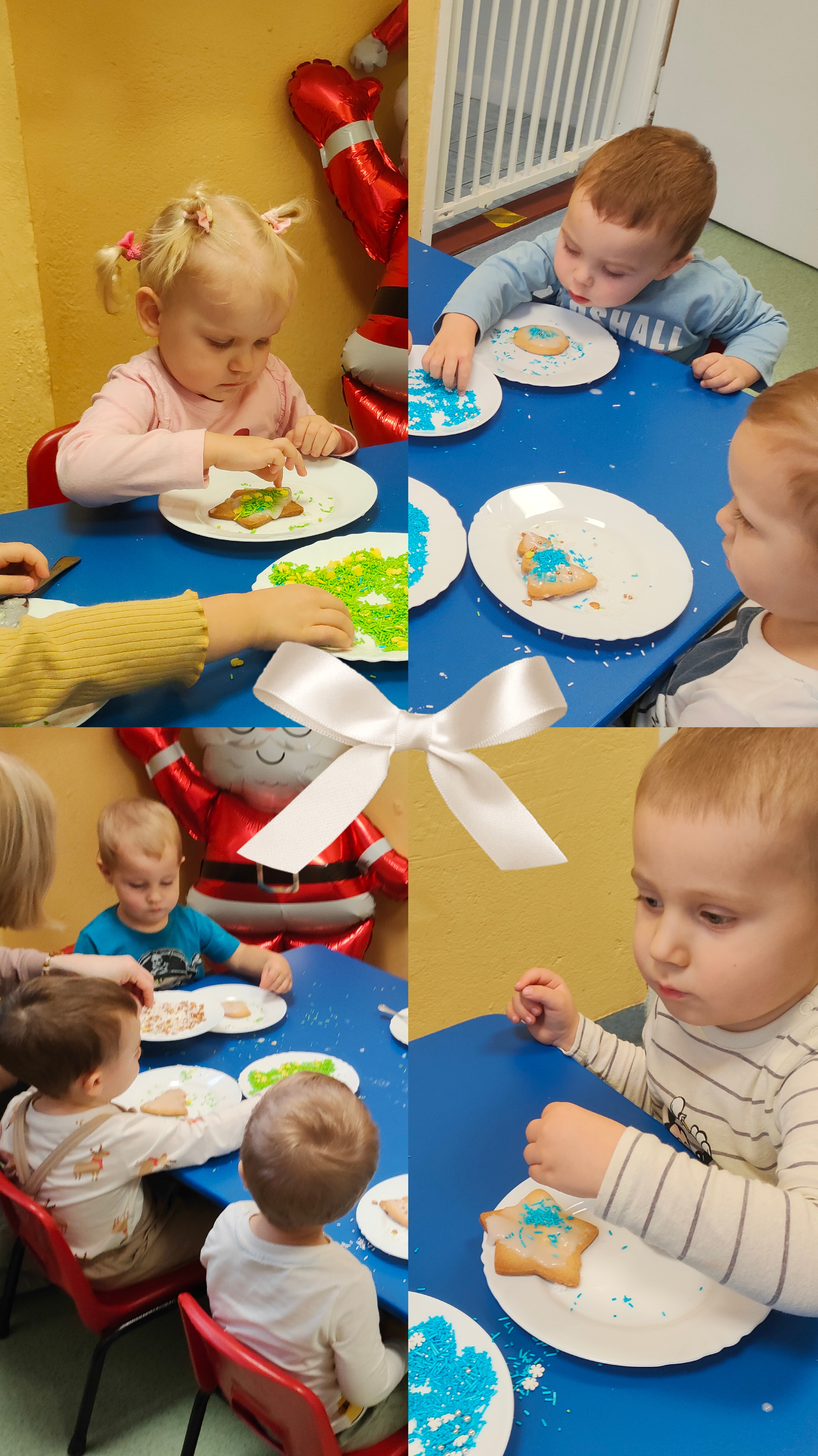 Nadchodzące Święta Bożego Narodzenia to szczególny czas. Właśnie po to, aby i w naszym żłobku zagościła świąteczna atmosfera 3 grudnia zorganizowałyśmy w grupie „ Biedroneczek ” warsztaty z udziałem rodziców. Nasze warsztaty pod nazwą "Zaczarowana Bombka" pokazały wiele pomysłowości i kreatywności ze strony rodziców i dzieci. Wspólna twórczość w atmosferze zabawy, zaangażowanie, przeżyte emocje, a co najważniejsze czas, który dzieci spędziły z rodzicami to bardzo cenne doświadczenie dla obu stron. Serdecznie dziękujemy rodzicom za przybycie i wspólnie spędzony czas. W minionym tygodniu dzieci uczestniczyły aktywnie w powstawaniu świątecznych ciasteczek. Dekorowanie słodkich przysmaków to tradycja, która nie tylko wprowadza dzieci w świąteczny nastrój, ale również rozwija ich kreatywność i zdolności manualne. Ta radosna aktywność staje się niezapomnianym wydarzeniem łączącym zabawę z nauką. Dzisiaj długo oczekiwany gość zawitał do naszej grupy. Wywołał uśmiech na twarzach maluszków. Dzieci z ogromną radością przywitały Mikołaja śpiewając mu piosenki. Na zakończenie Święty Mikołaj wszystkim przekazał piękne prezenty, a w nich – dla każdego coś dobrego. Dziękujemy Święty Mikołaju. Do zobaczenia za rok.