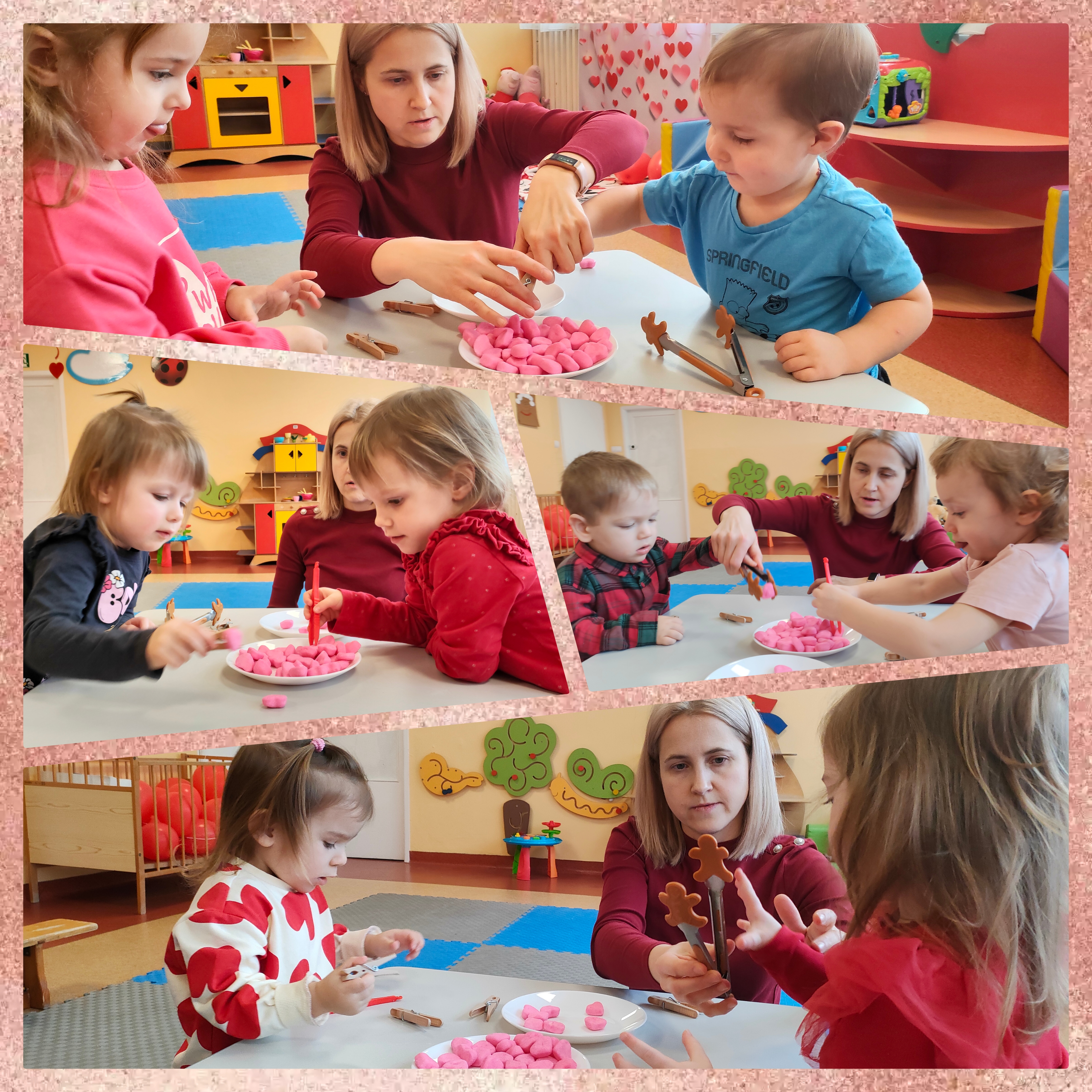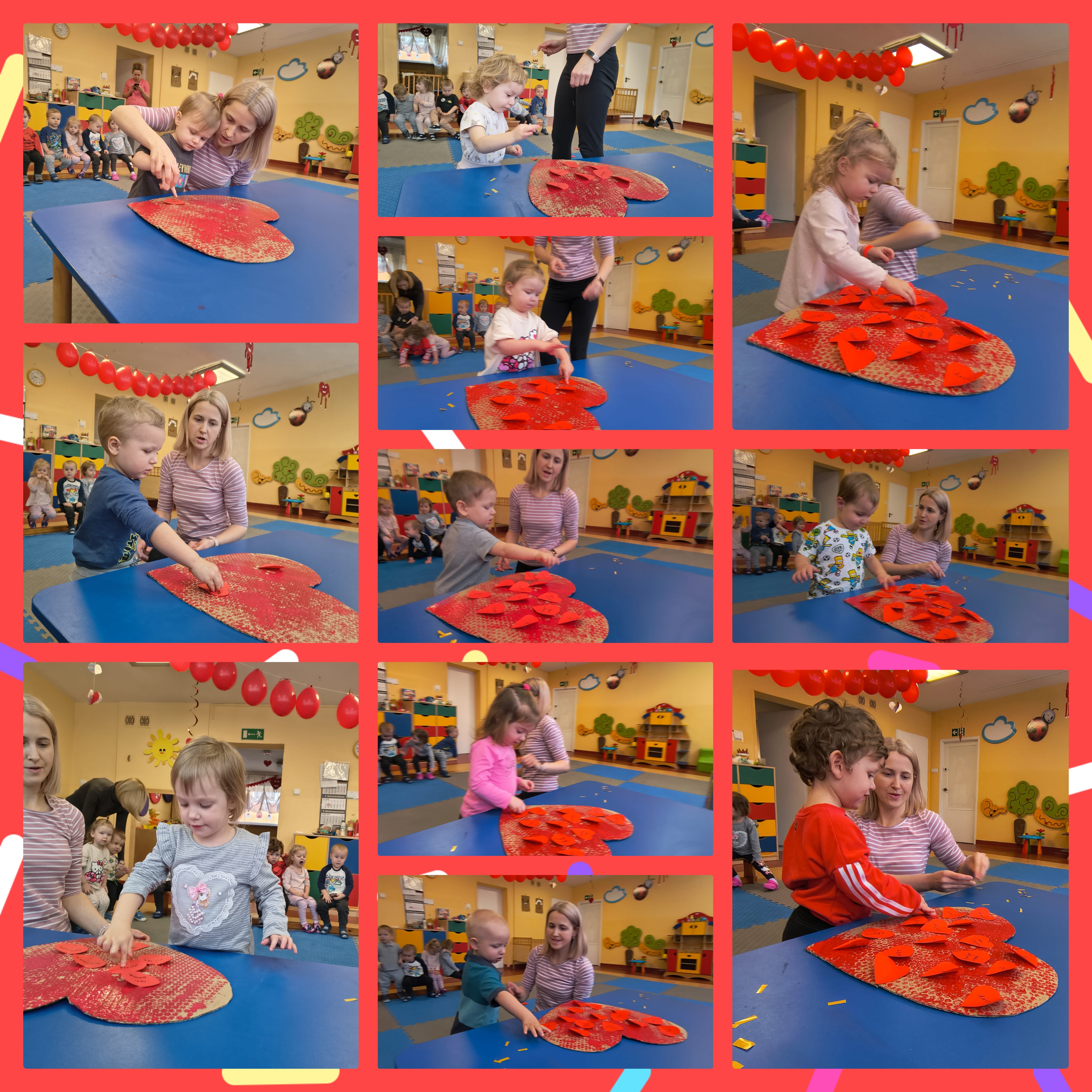 Nasze Biedroneczki zapoznały się z tradycją Walentynek. Odbyła się pogadanka na temat tego święta. Dzieci dowiedziały się czego symbolem jest serce oraz jak można okazywać szczęście, przyjaźn, miłość bliskim osobom nie tylko od święta. Utrwaliły kolor czerwony. Dzieci wykonały walentynkę dla swoich najbliższych. Wspólne zabawy integracyjne, zdjęcia wprawiły wszystkich w radosny nastrój. Nie zabrakło również słodkiego upominku. Dzieci z apetytem zajadały słodkie walentynkowe serduszka.