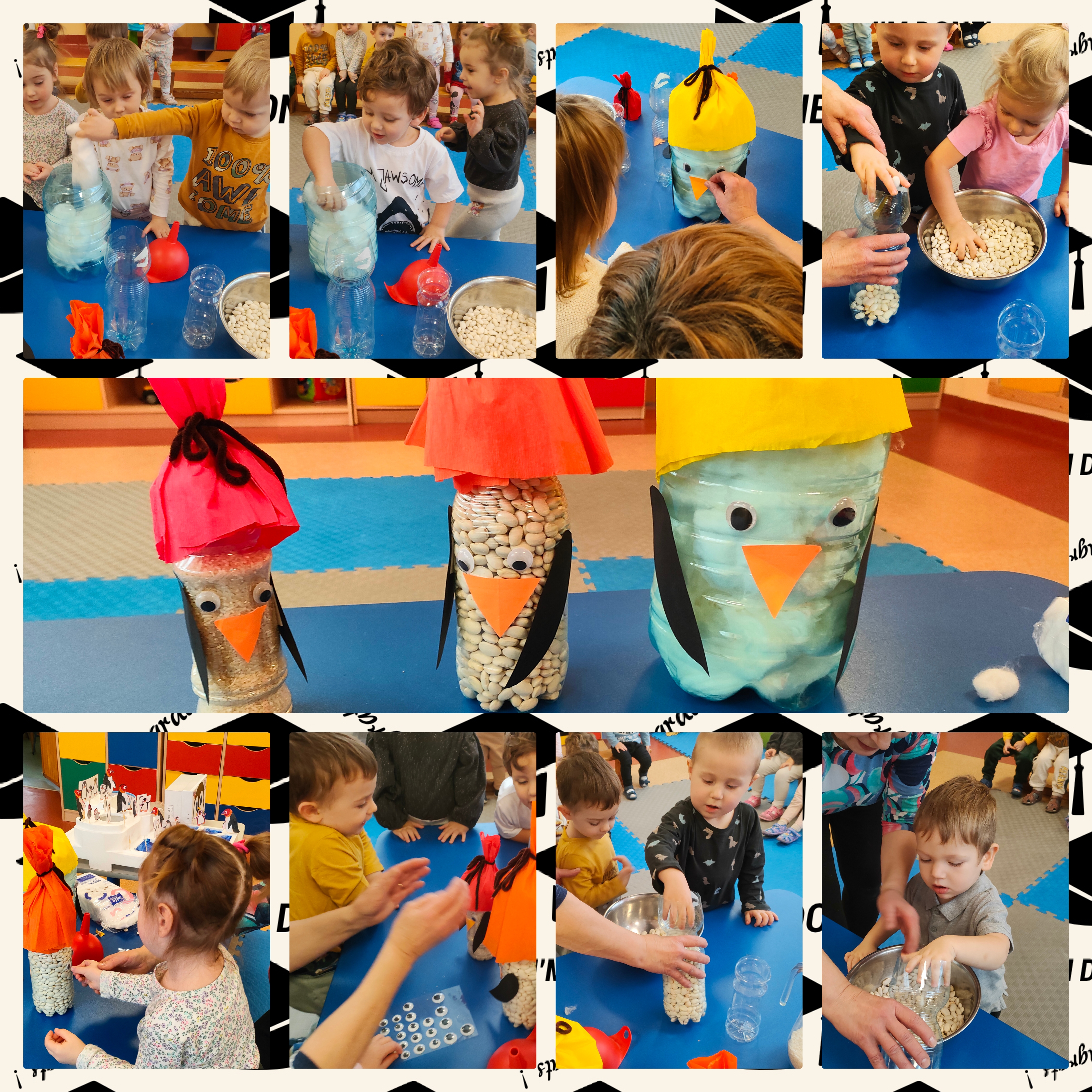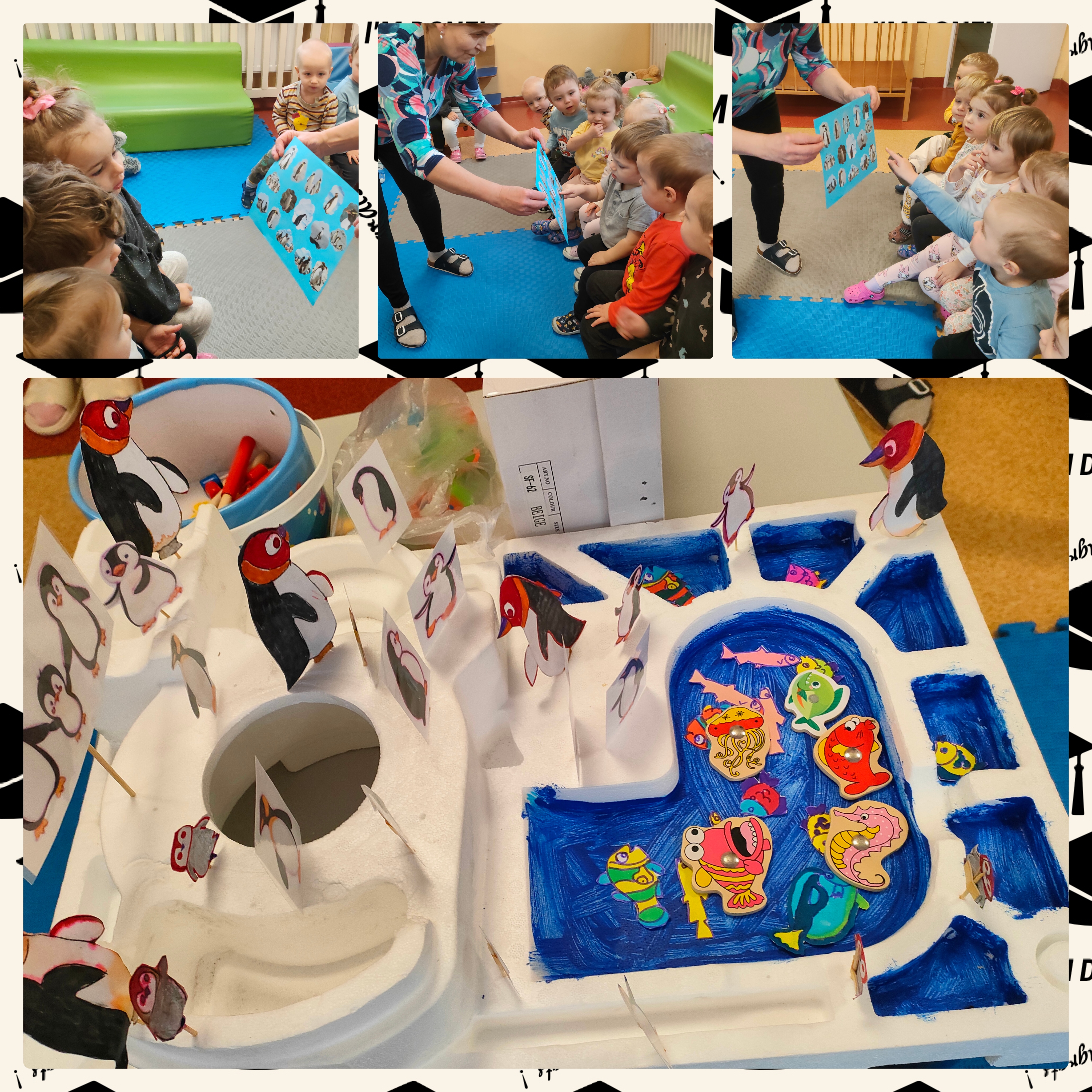 „Dzień Pingwina” był okazją, aby zapoznać dzieci ze światem tych niezwykłych ptaków. Pingwinkowe zabawy, dostarczyły mnóstwo radości, ale również rozwijały umiejętności motoryczne, kreatywność oraz wiedzę o przyrodzie. Poznaliśmy wiele ciekawostek o pingwinach, jak wyglądają, czym się odżywiają. Już wiemy, gdzie jest Antarktyda. Nie mogło również zabraknąć tańca pingwinów przy muzyce, łowienia ryb, tworzenia własnych pingwinków z gotowych elementów.