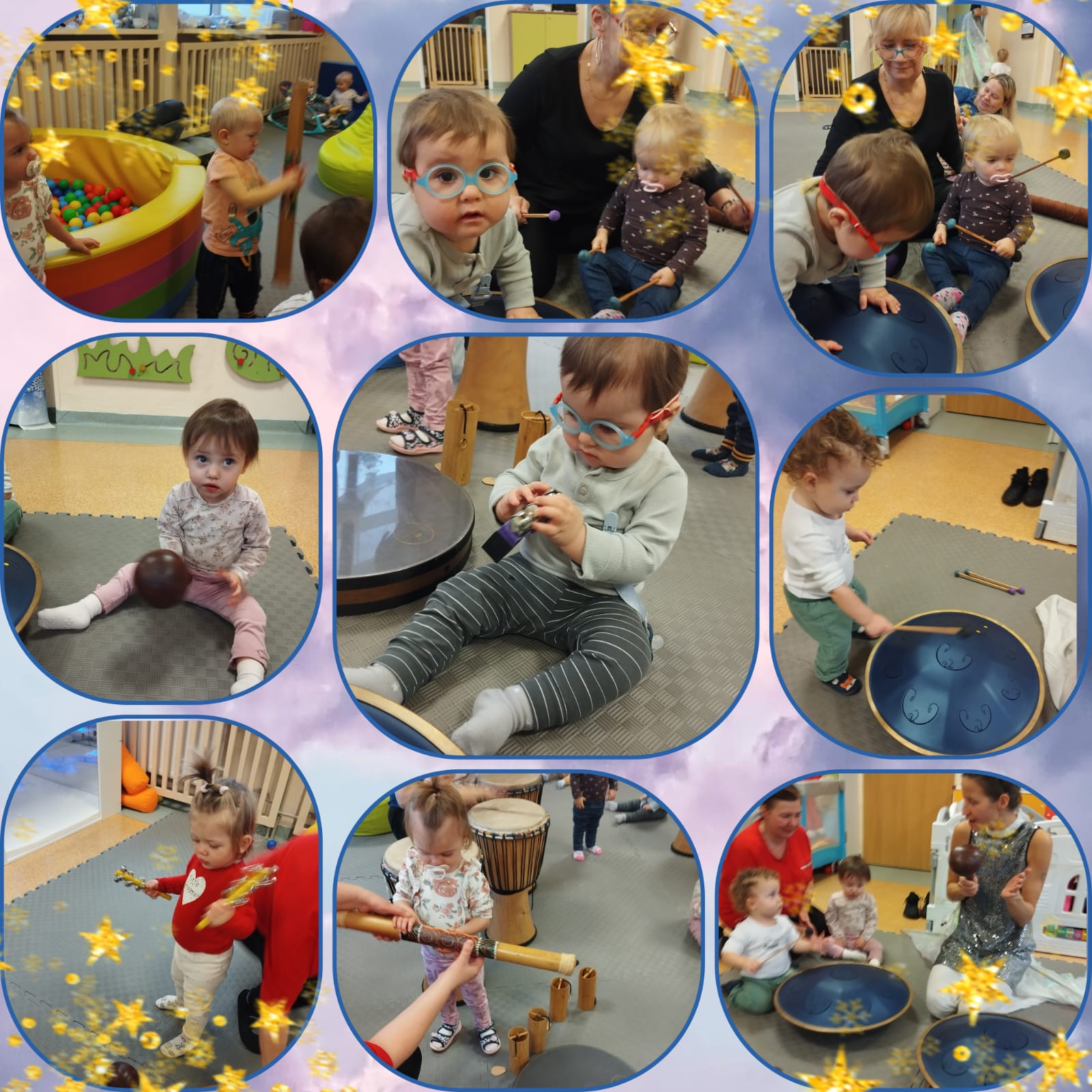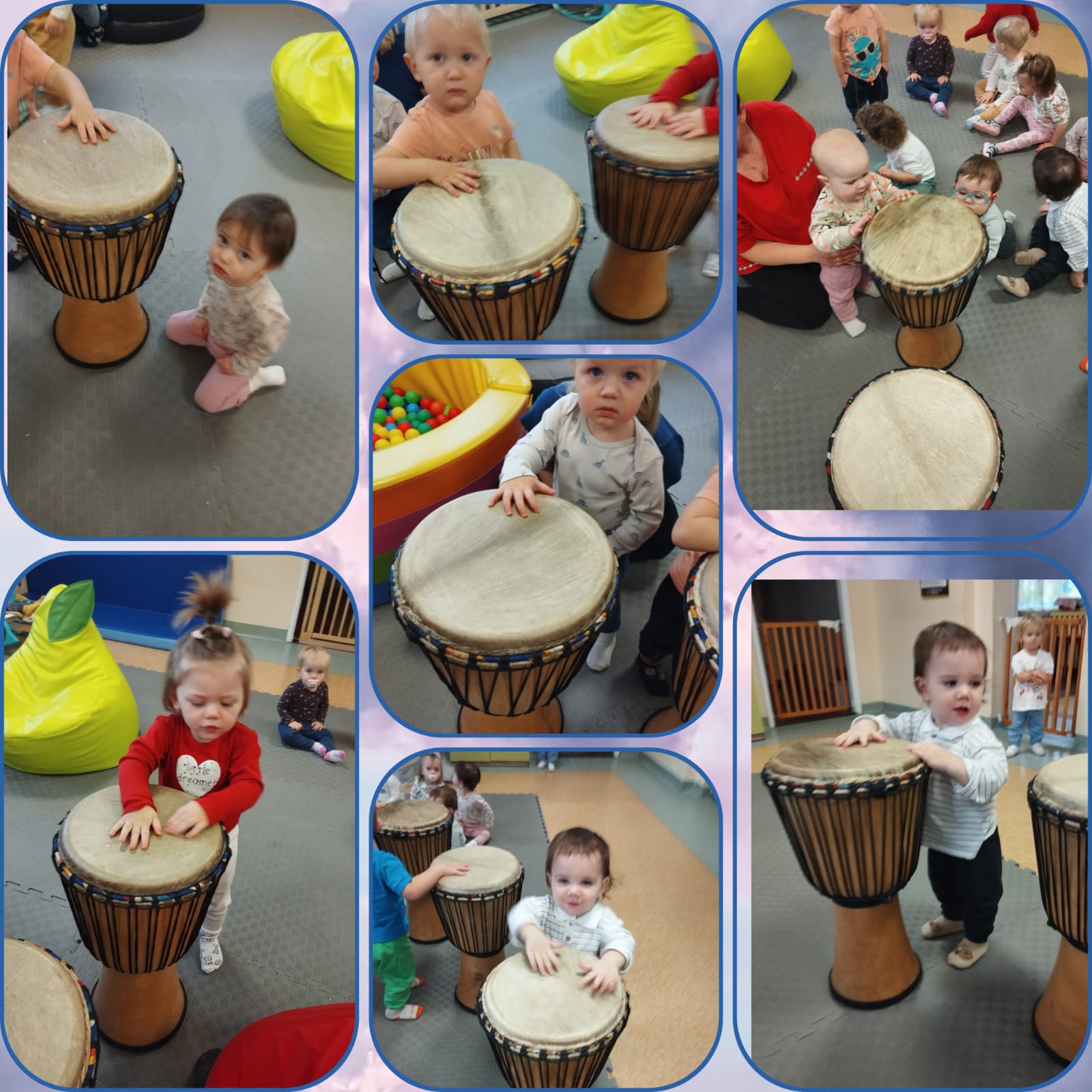 Maluszki miały możliwość pod okiem doświadczonej instruktorki spróbować wydobyć dźwięki wykorzystując bębny i różnego rodzaju instrumenty.