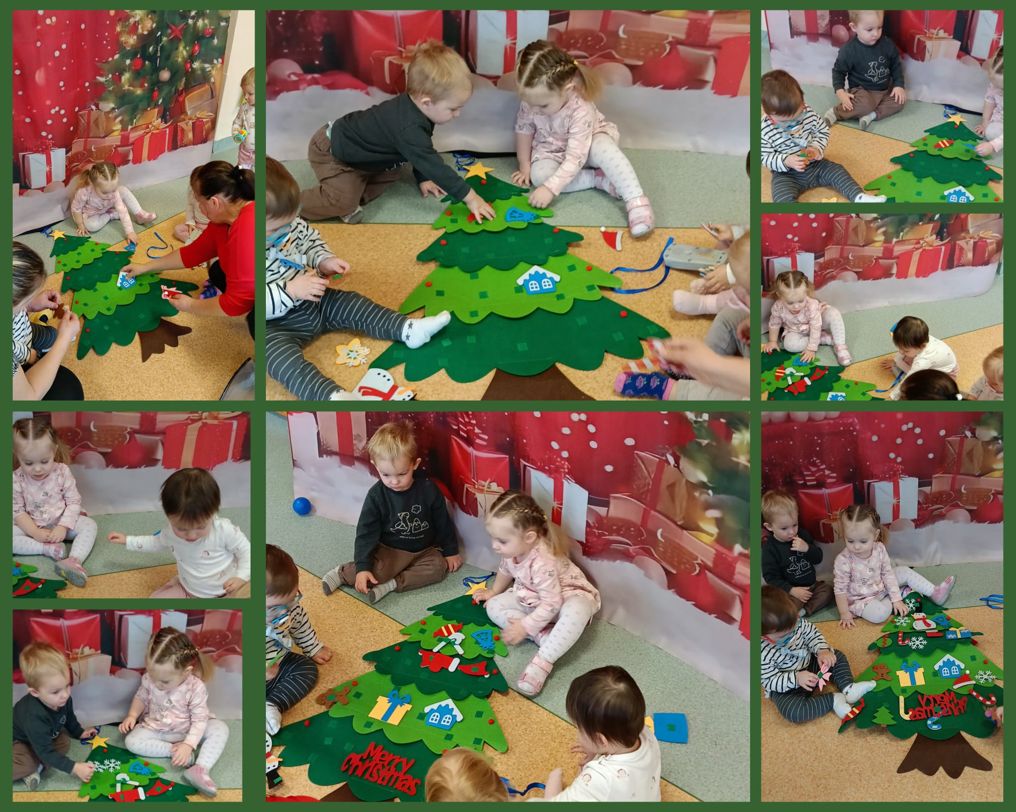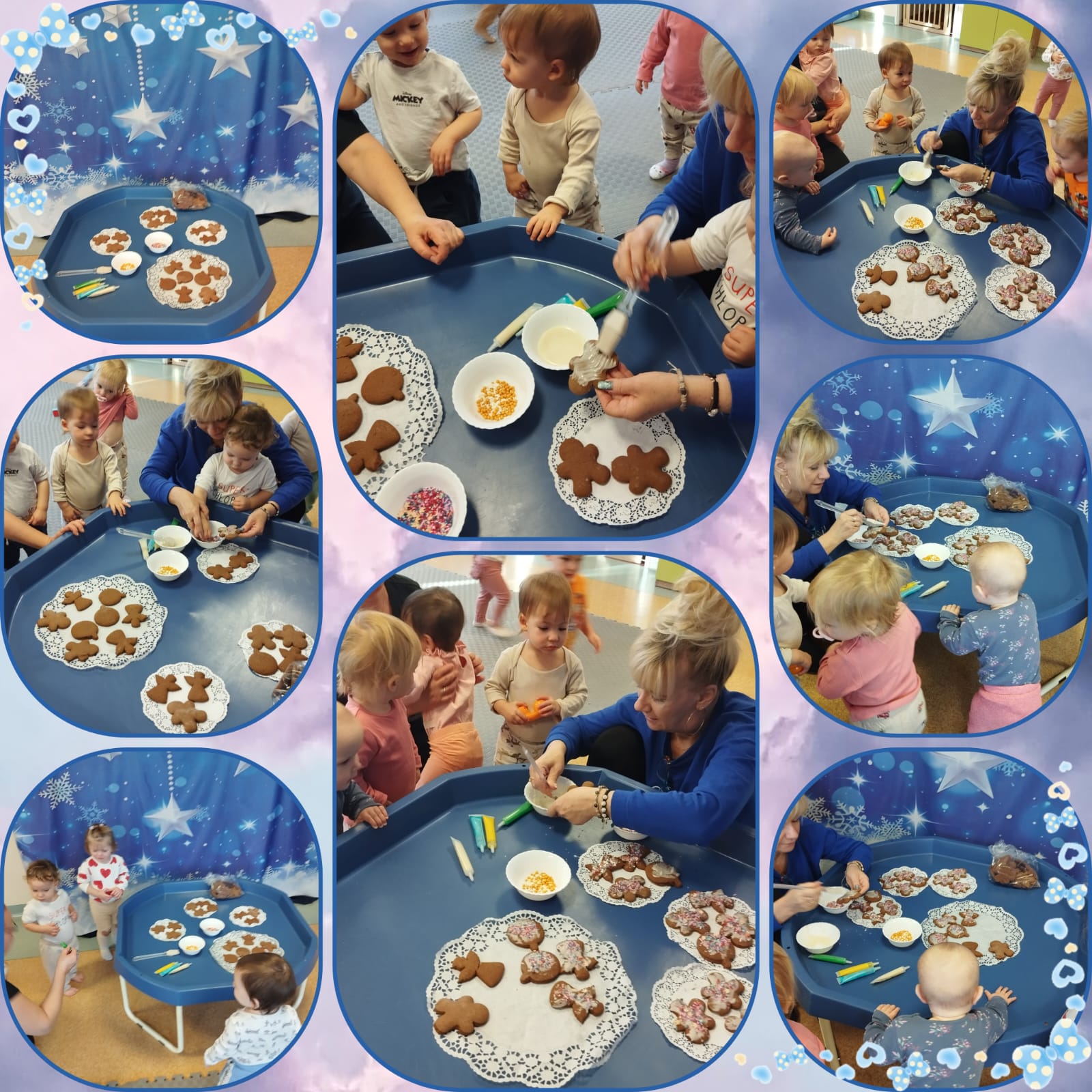 Nasi milusińscy z okazji zbliżających się Świąt Bożego Narodzenia brali udział w wielu ciekawych zajęciach: ozdabiały pierniczki, ubierały choinkę, słuchały piosenek pt ,,Choinka", "Pada śnieg", a na koniec tygodnia uczestniczyły w uroczystym wigilijnym posiłku.