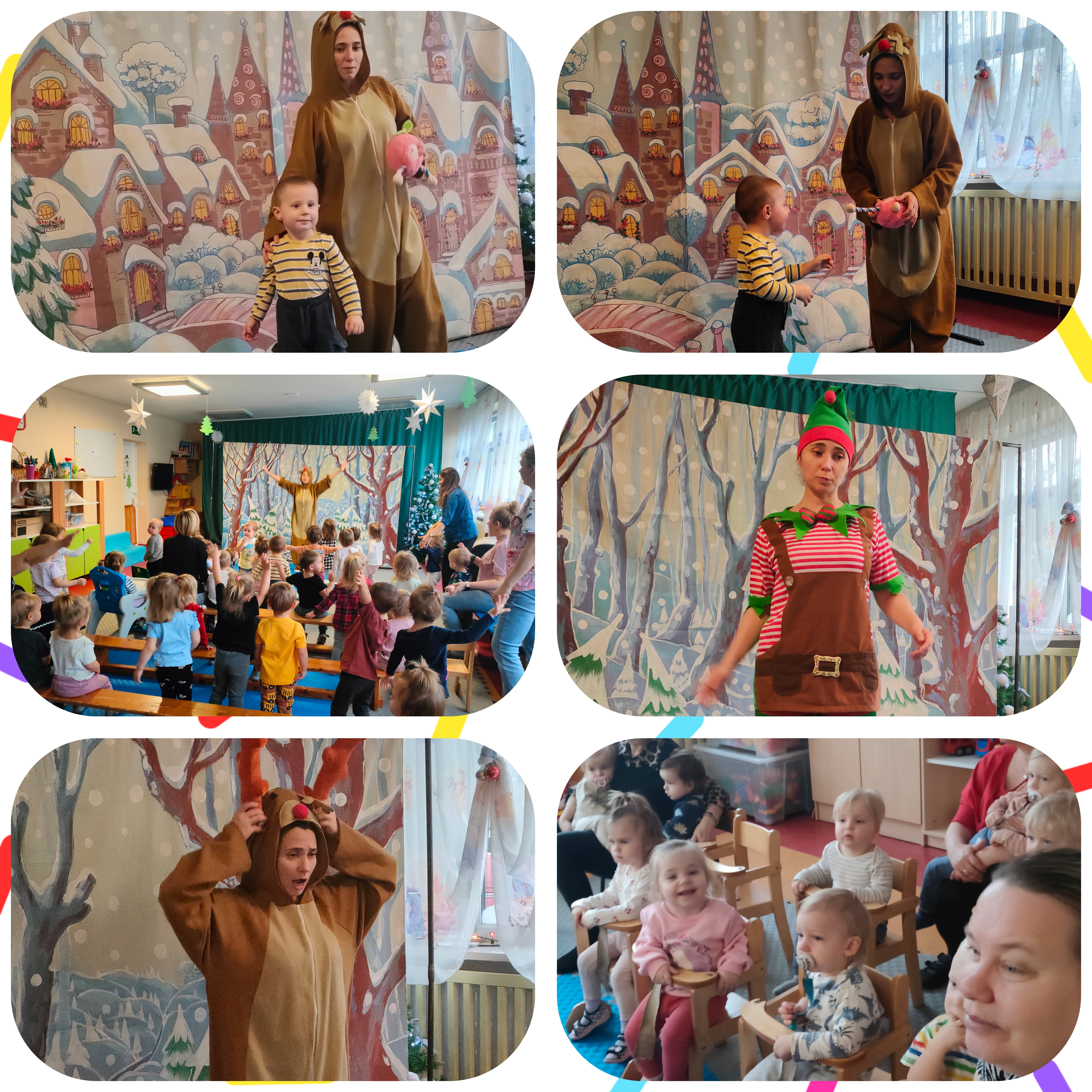 Dzieci wraz z opiekunami wyruszyły w podróż za młodą reniferką Rózią, która marzy o tym, by dołączyć do zaprzęgu Świętego Mikołaja i rozświetlać niebo w wigilijną noc. Na swojej drodze spotkała Mądrą Sowę i Wilka, Renifera Leo. Leoś miał inne marzenie – zamiast pędzić przez niebo, chciałby zostać tancerzem.