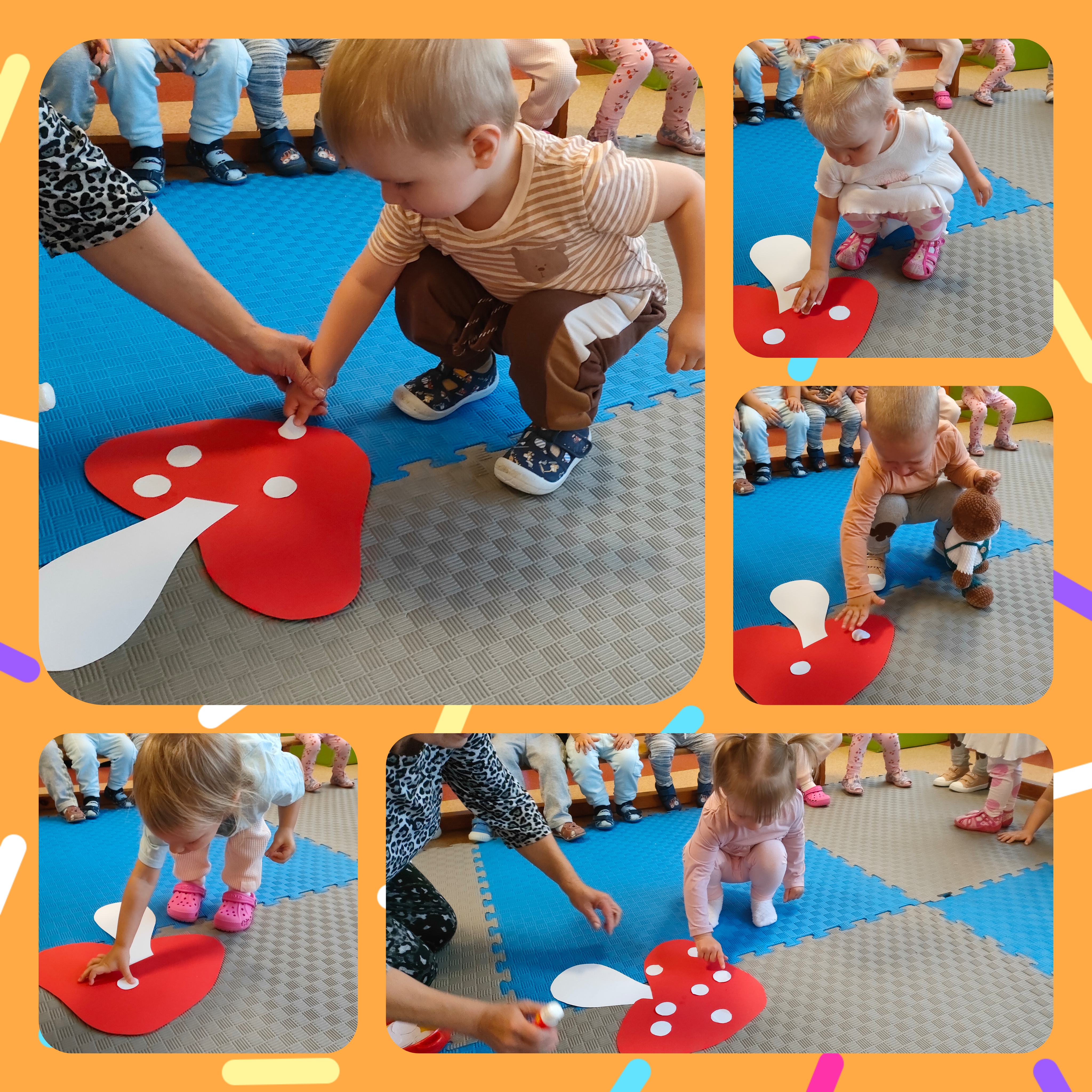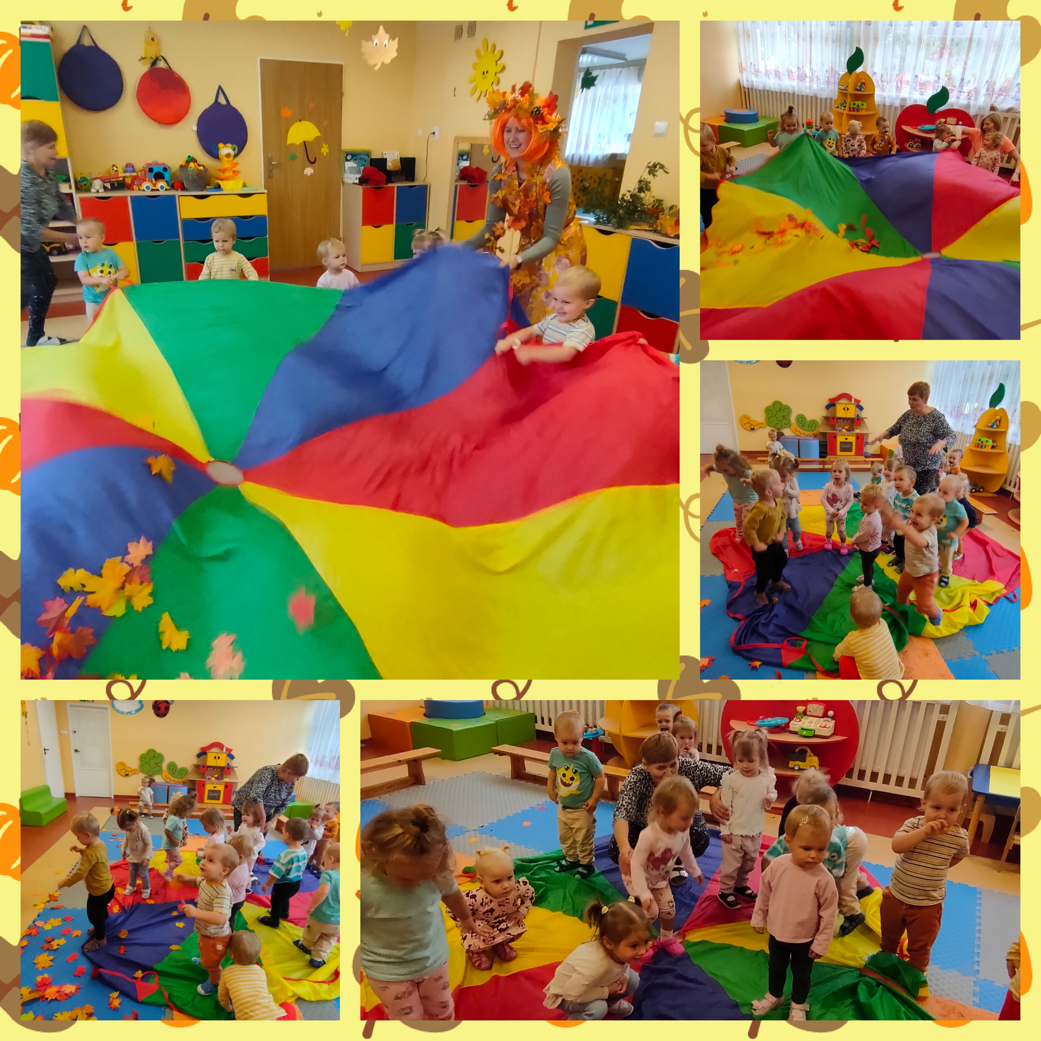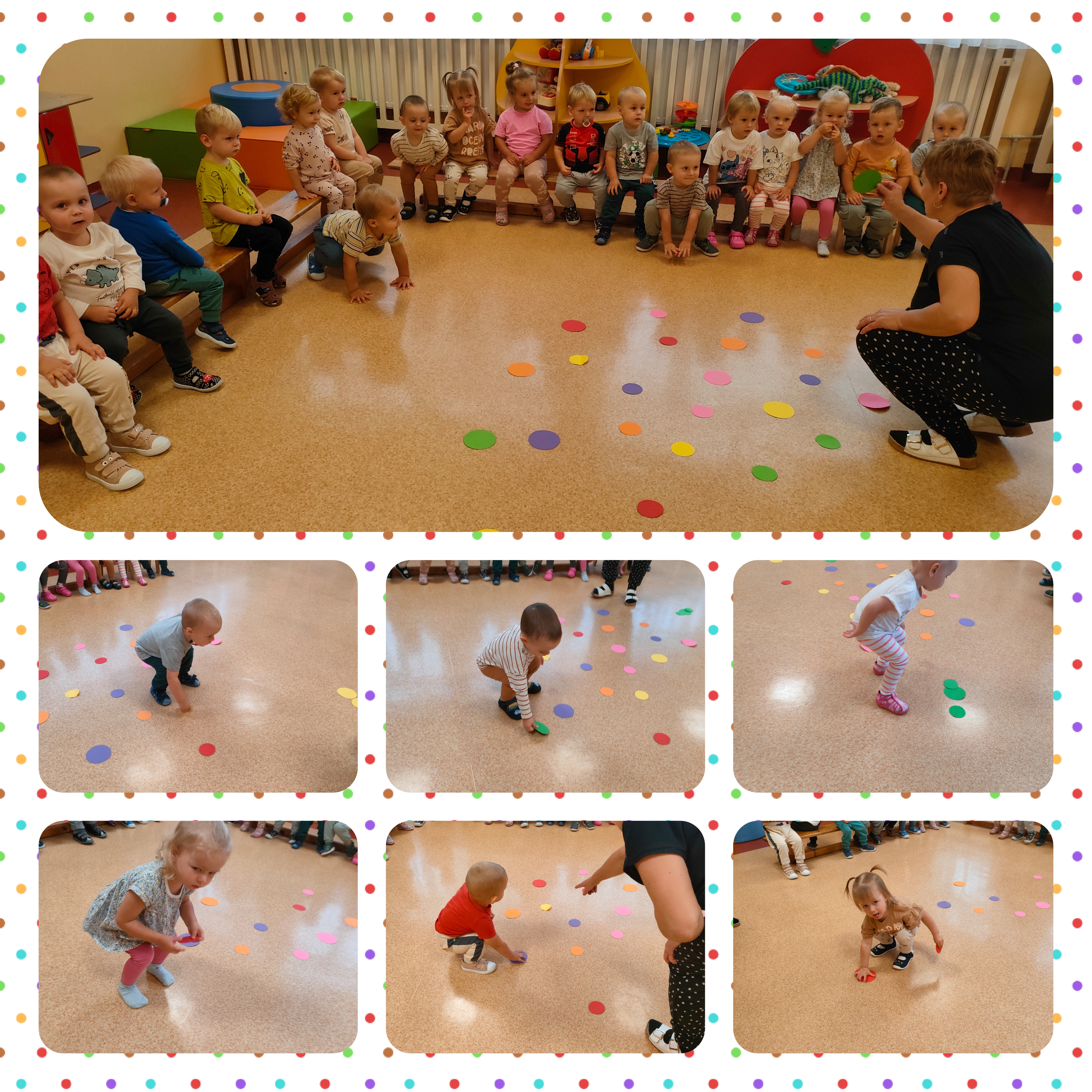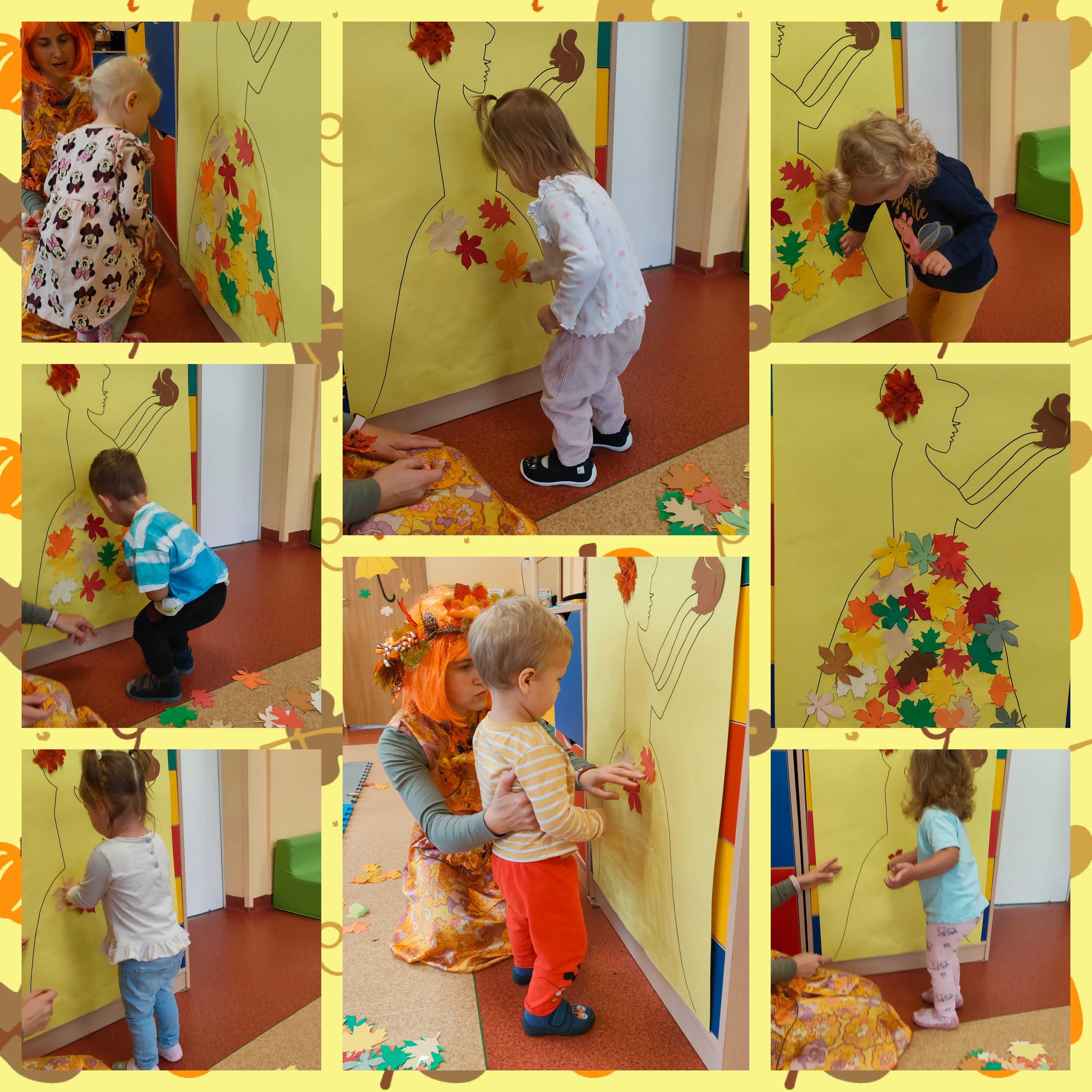 Bawiliśmy się z Kropką w dniu jej święta (15 września). Witaliśmy panią jesień, podziwiając różnorodność jej darów. Segregowaliśmy je na kategorie: kasztany, żołędzie, liście. Na spacerze przyglądaliśmy się, jak wygląda przyroda jesienią. A gdy nie było pogody bawiliśmy się w sali zabaw (tworzyliśmy różne rzeczy z klocków, np. instrumenty; układaliśmy puzzle, układanki; oglądaliśmy książeczki; bawiliśmy się autami, lalkami). Tańczyliśmy - realizując program taneczny, dzięki któremu dzieci uczą się kształtowania koordynacji, poczucia rytmu i sprawności fizycznej.