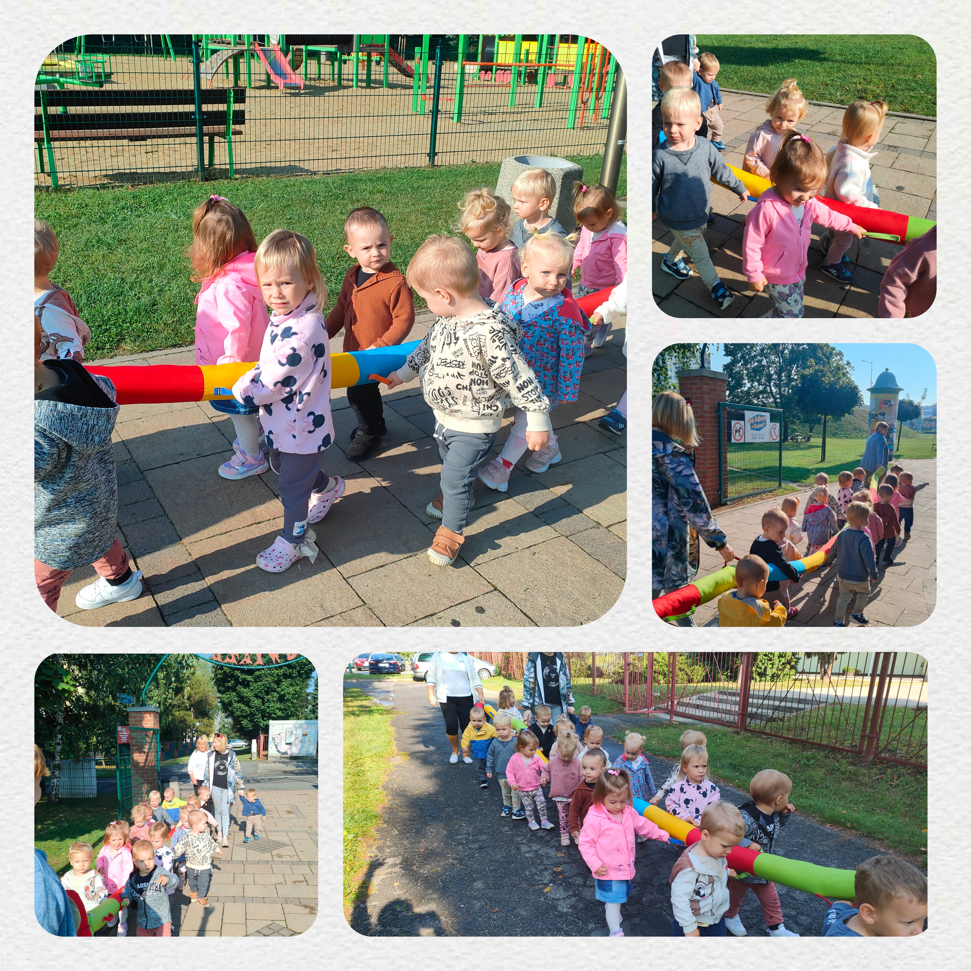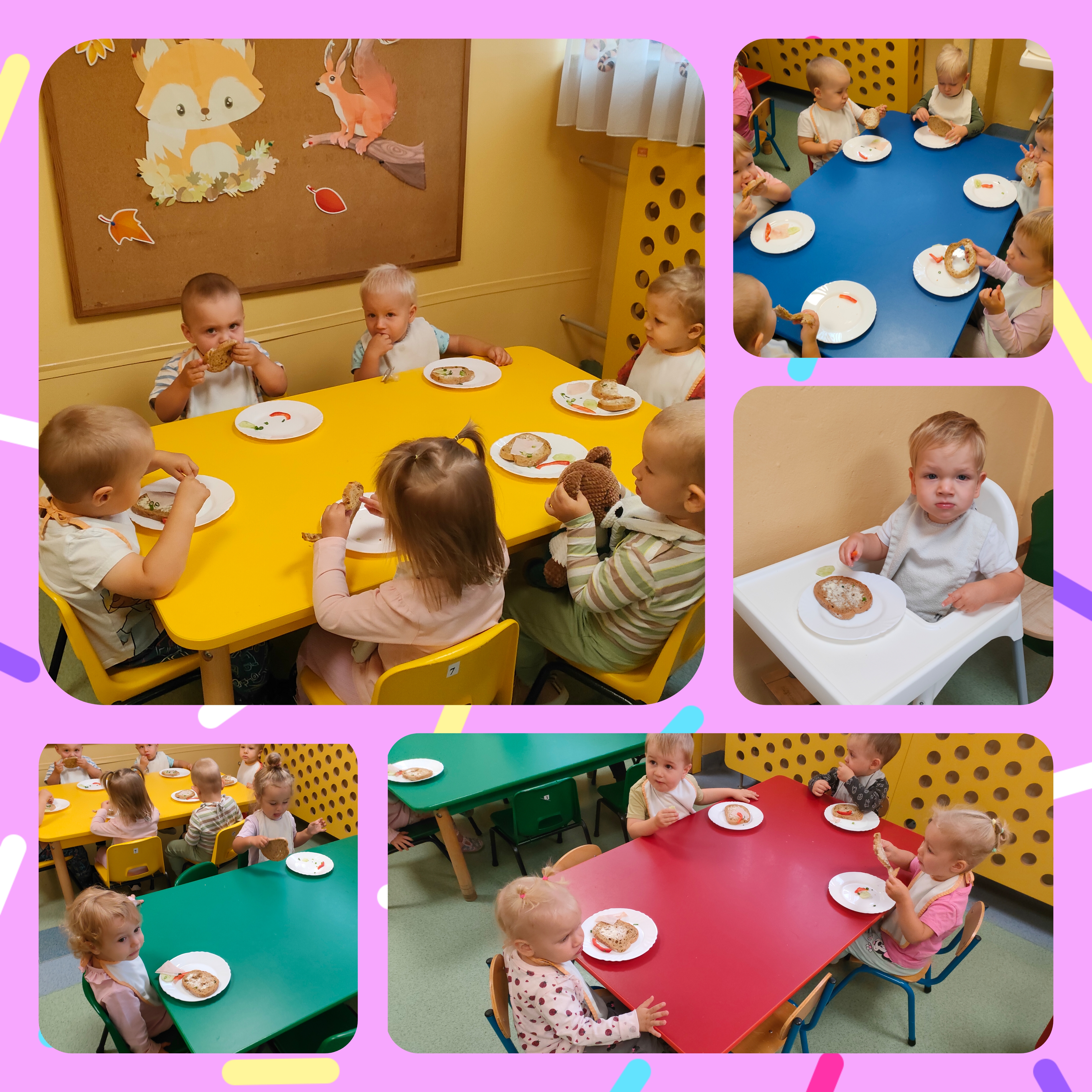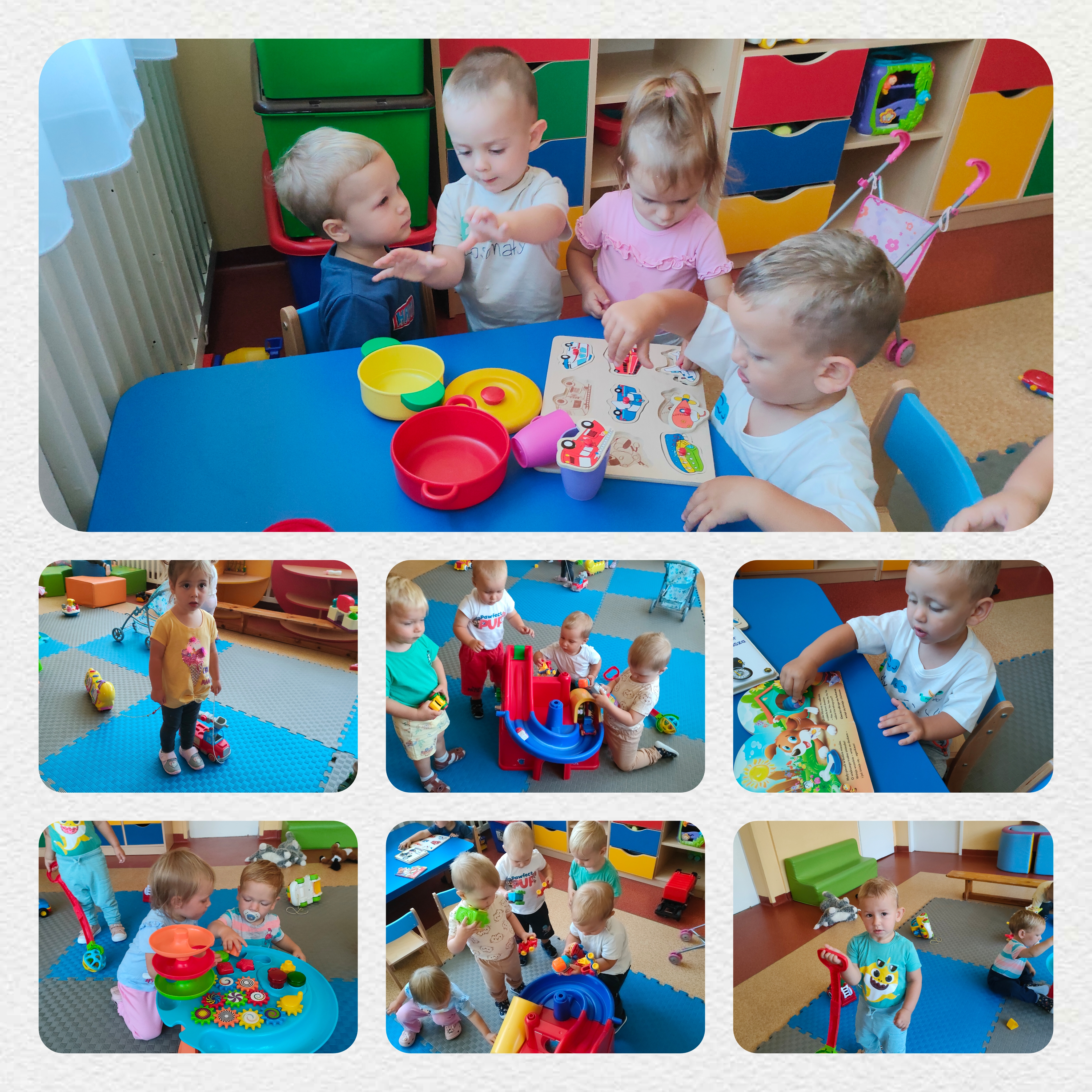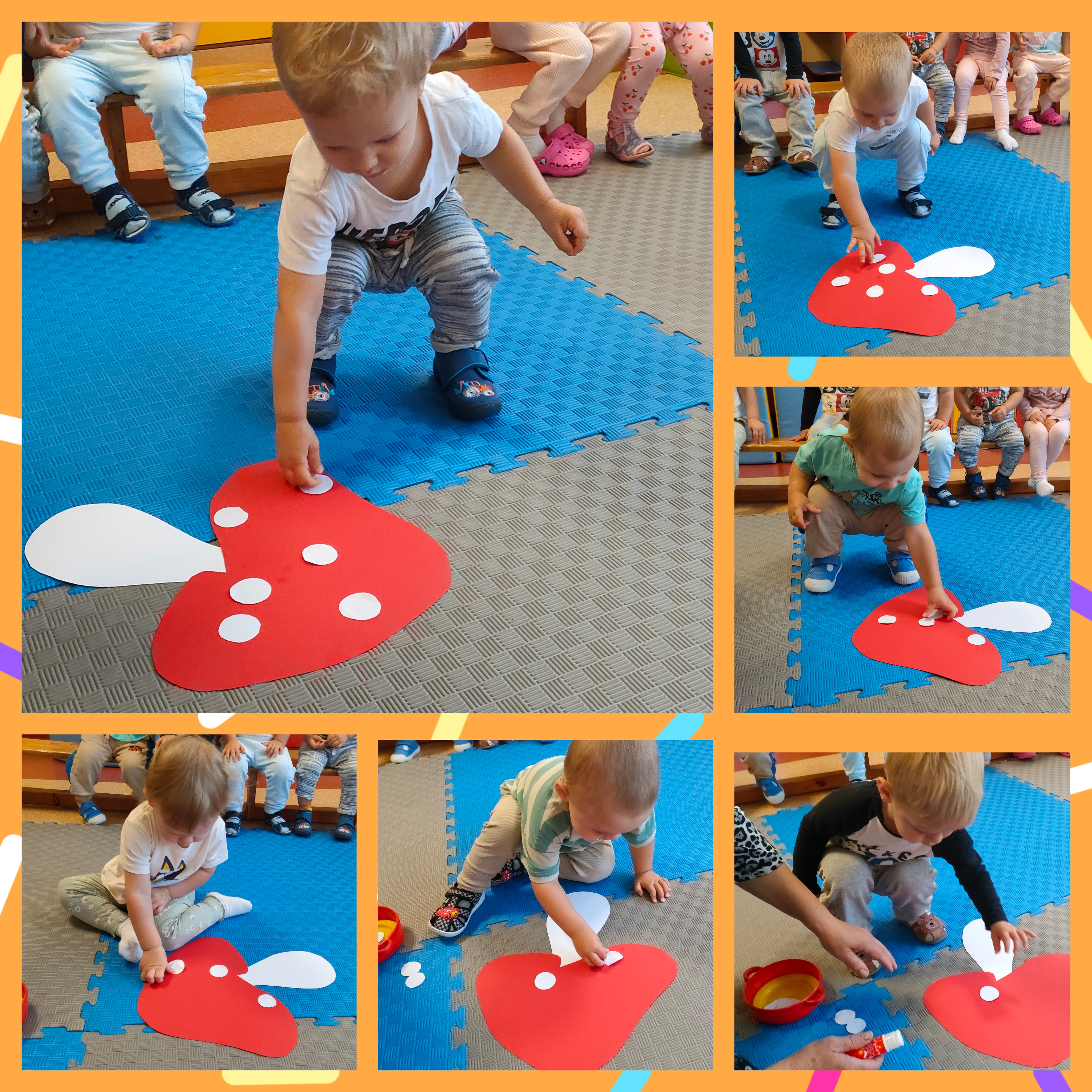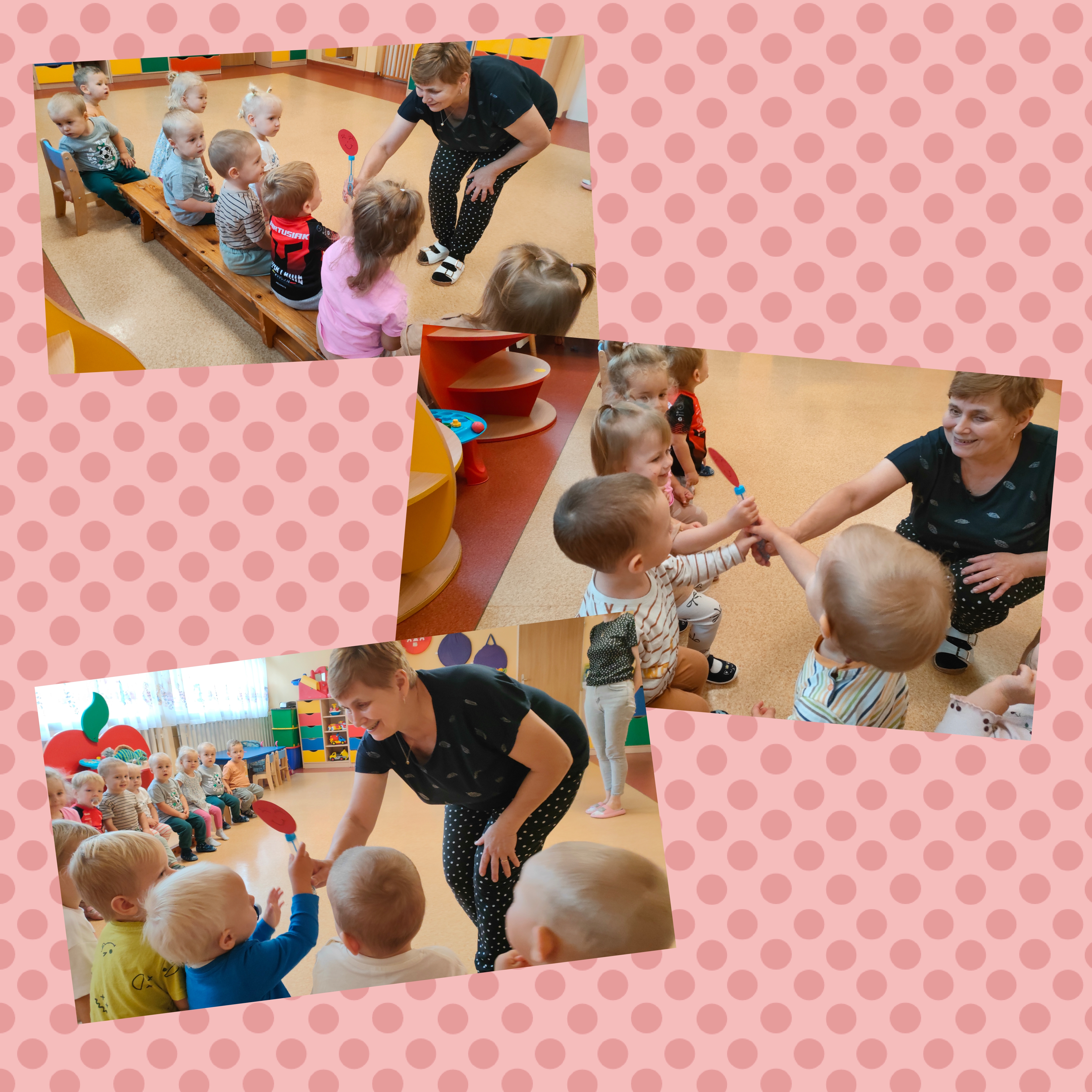Bawiliśmy się z Kropką w dniu jej święta (15 września). Witaliśmy panią jesień, podziwiając różnorodność jej darów. Segregowaliśmy je na kategorie: kasztany, żołędzie, liście. Na spacerze przyglądaliśmy się, jak wygląda przyroda jesienią. A gdy nie było pogody bawiliśmy się w sali zabaw (tworzyliśmy różne rzeczy z klocków, np. instrumenty; układaliśmy puzzle, układanki; oglądaliśmy książeczki; bawiliśmy się autami, lalkami). Tańczyliśmy - realizując program taneczny, dzięki któremu dzieci uczą się kształtowania koordynacji, poczucia rytmu i sprawności fizycznej.